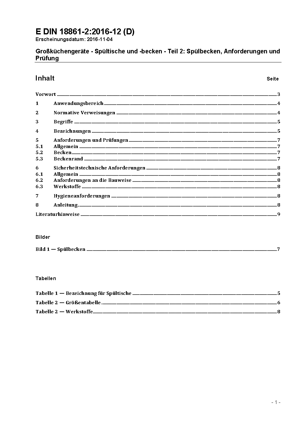 This standard contains requirement for design and function of dishwashing facilities and sinks for use in professional kitchens, including the testing, technical safety and hygienic characteristic feature. Against DIN 18861-2:2000-06 requirements for the hygiene and instructions for use were integrated.