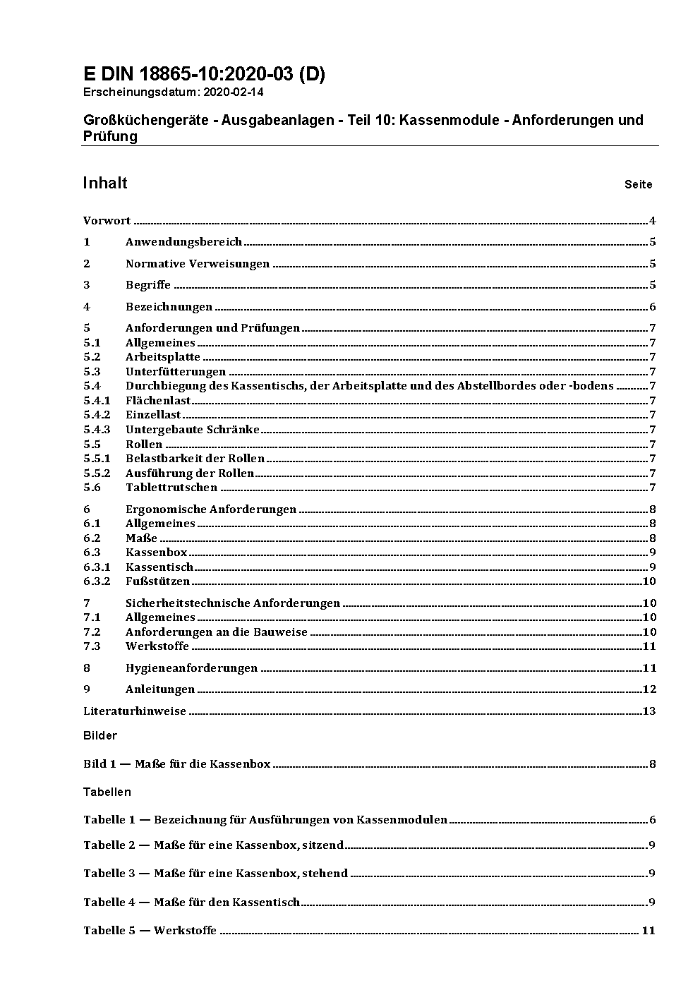 This standard contains requirements and testing from cash module for food distribution equipment. This standard also handle ergonomic requirements.