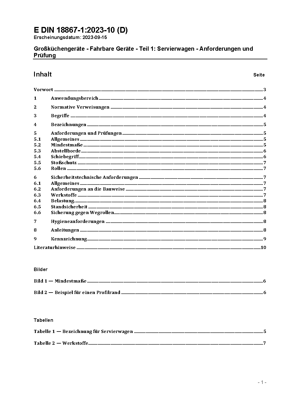 This standard contains requirement for design and function of runabout carts for using in professional kitchens, including the testing, technical safety and hygienic characteristic feature. Against DIN 18867-1:1997-01 the section 2 and the safety requirements were reviewed, the tests to the requirements attributed and hygienic aspects integrated.