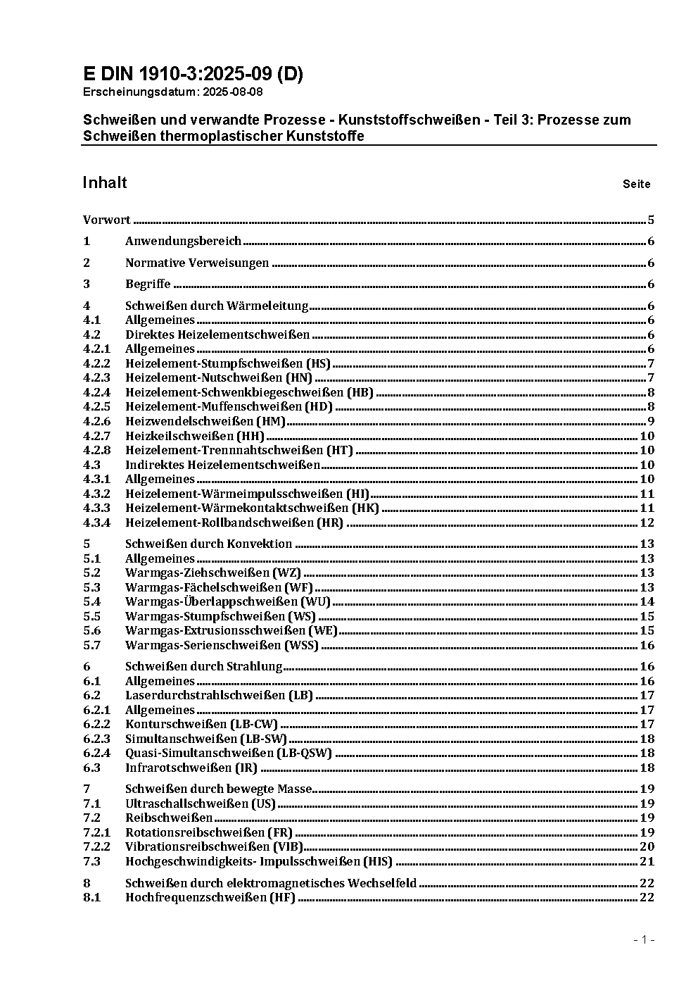 Schweißen und verwandte Prozesse - Kunststoffschweißen - Teil 3: Prozesse zum Schweißen thermoplastischer Kunststoffe