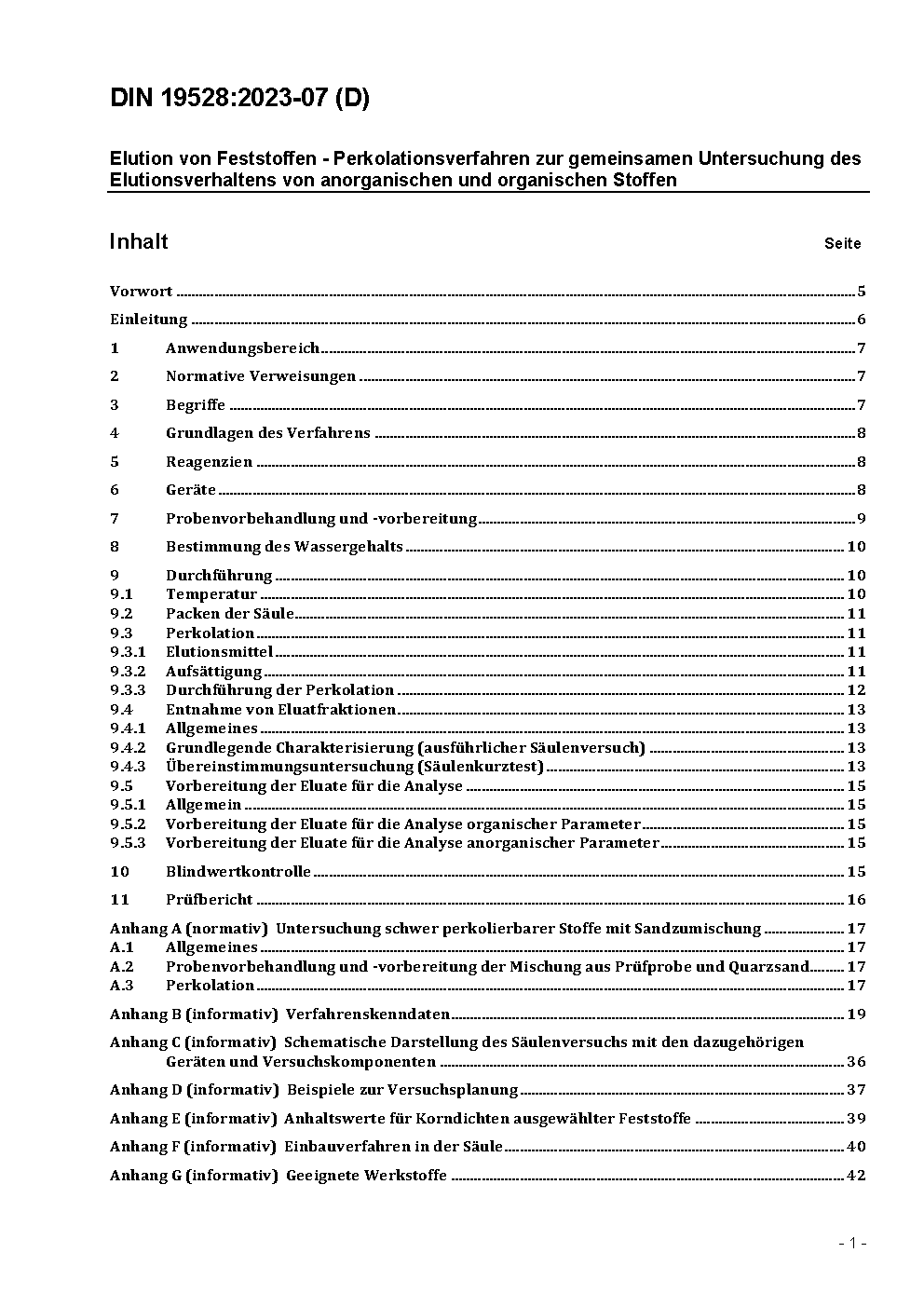 Elution von Feststoffen - Perkolationsverfahren zur gemeinsamen Untersuchung des Elutionsverhaltens von organischen und anorganischen Stoffen für Materialien mit einer Korngröße bis 32 mm - Grundlegende Charakterisierung mit einem ausführlichen Säulenversuch und Übereinstimmungsuntersuchung mit einem Säulenschnelltest