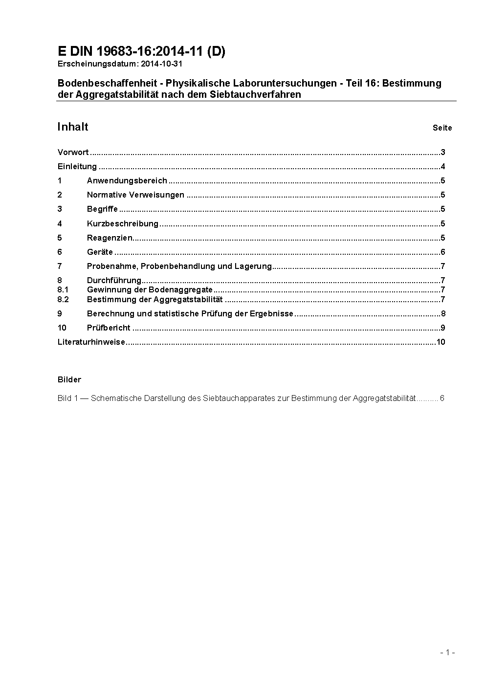 Bodenbeschaffenheit - Physikalische Laboruntersuchungen - Teil 16: Bestimmung der Aggregatstabilität nach dem Siebtauchverfahren