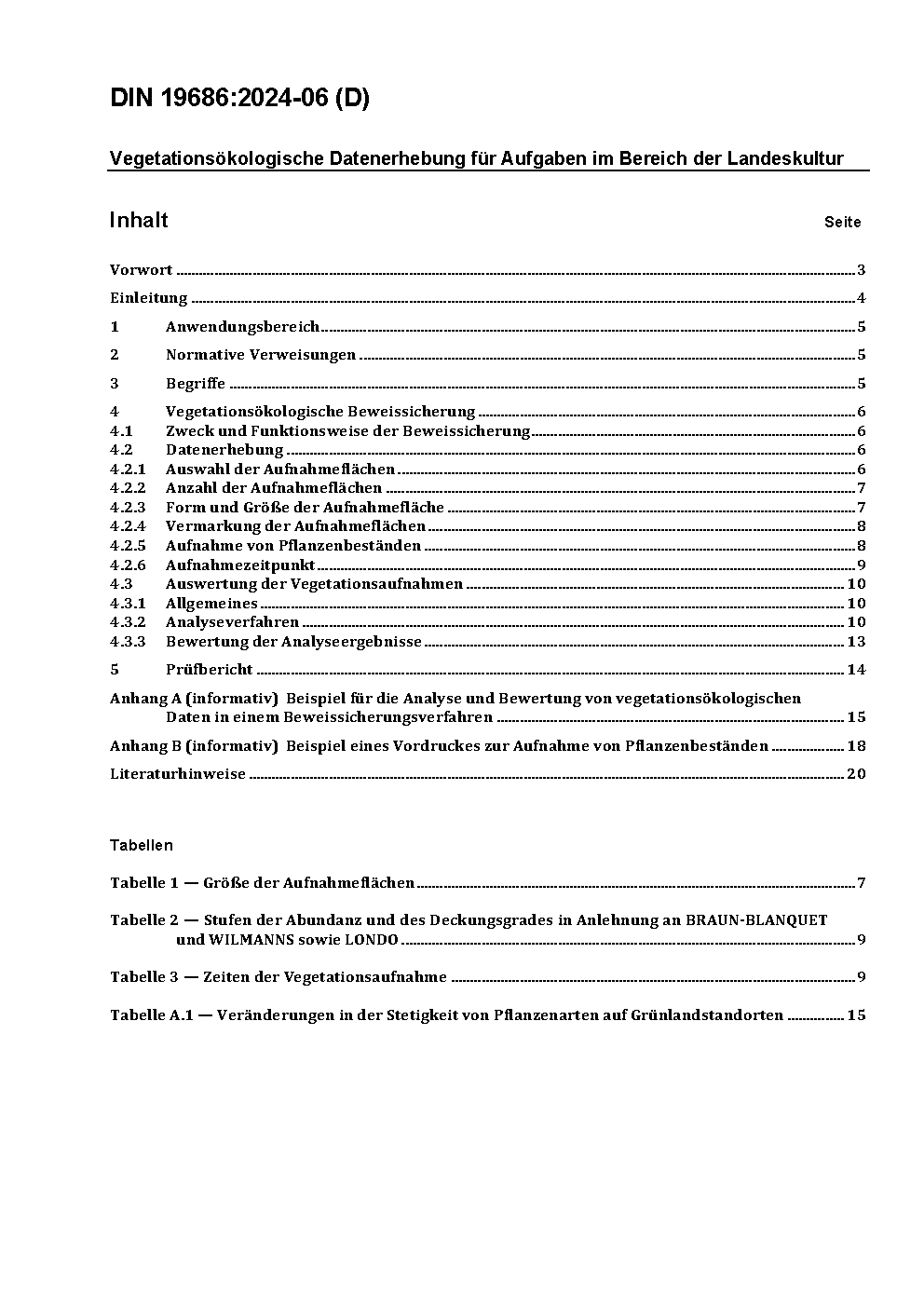 This standard describes a method of investigation the vegetation of agricultural sites. This kind of investigation gives information on the water management in the soil and serves to verify possible changes in the water management of agricultural areas. Moreover, it is used to reveal plant formation useful and worthy of being preserved from the biological point of view.