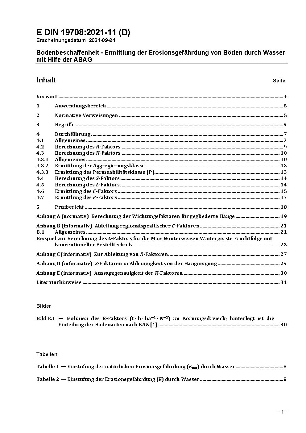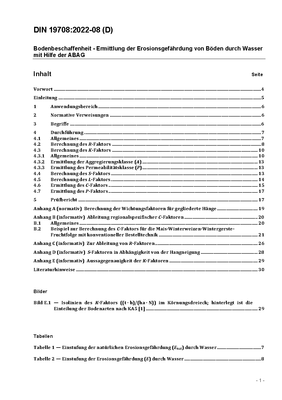 The standard defines the approach for predicting erosion of agriculturally used soils by water by means of the long-term model of ABAG, the Universal Soil Loss Equation.