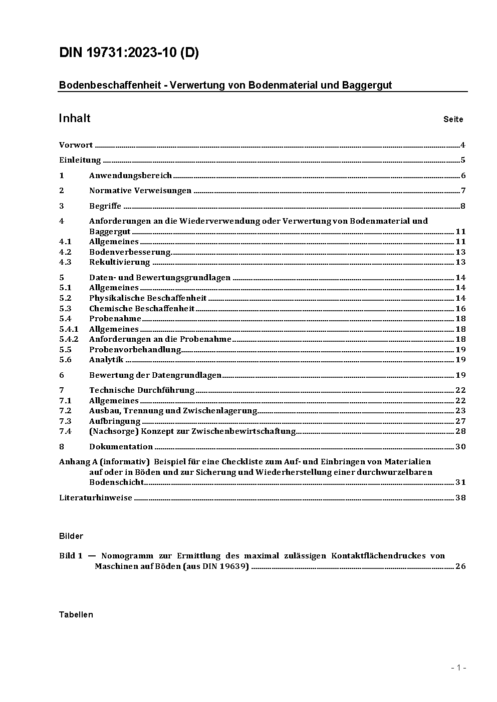 The document contains requirements for the utilization of soil material with and without pretreatment. Soil material according to this document is excavated soil or dredged material, usually deriving through construction, maintenance and rehabilitation processes. Out of scope is the deposition of soil material into existing waters and cavitations (fillings).