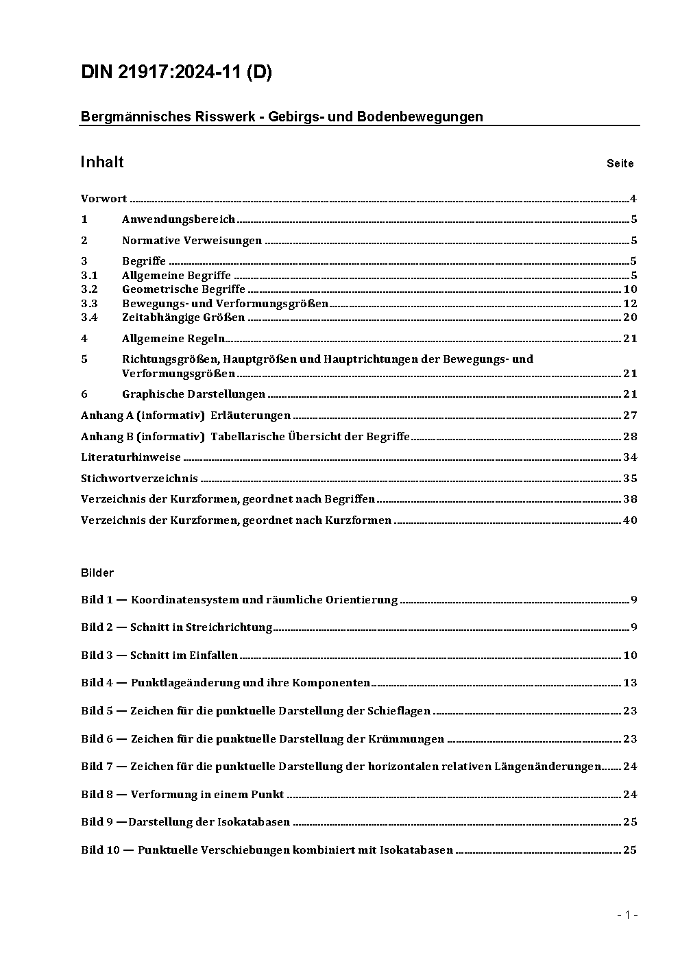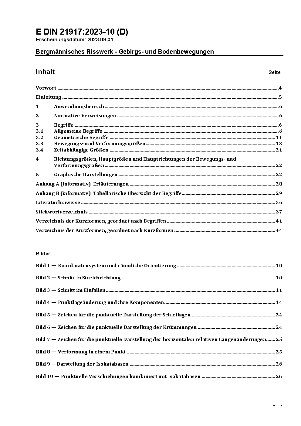 The document contains the terms, formula symbols and symbols to be used for description, calculation and marking of strata and ground movements. The document applies to the features of mining-specific mapping.
