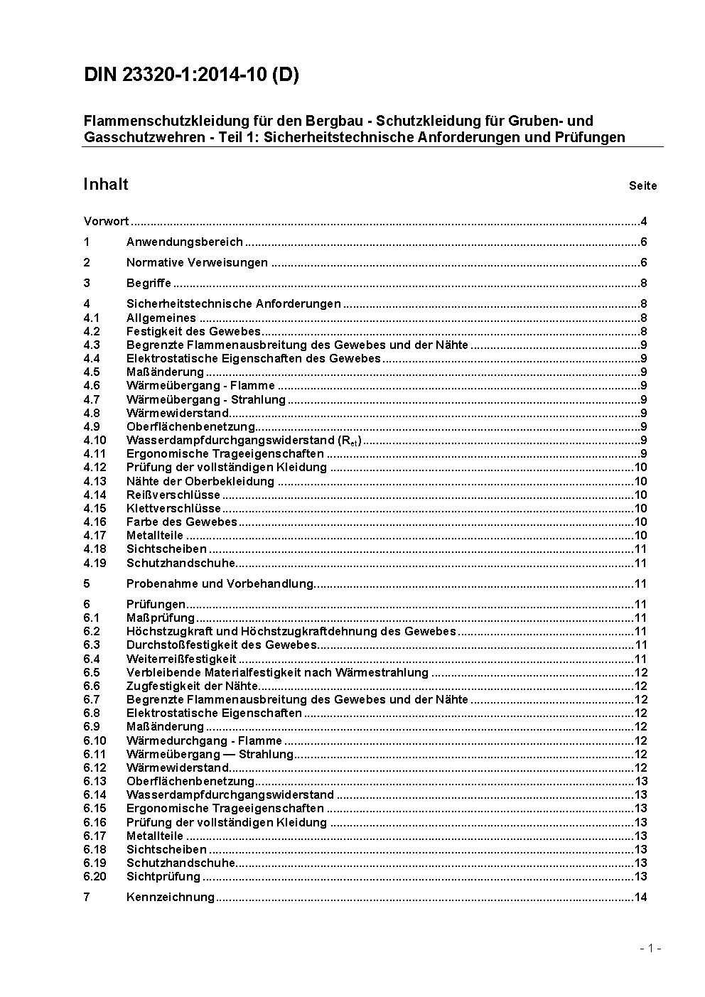 Flameproof protective clothing are used in the mining to protect against explosions, flames and other flame jets. The document describes the requirement out to DIN EN 469.