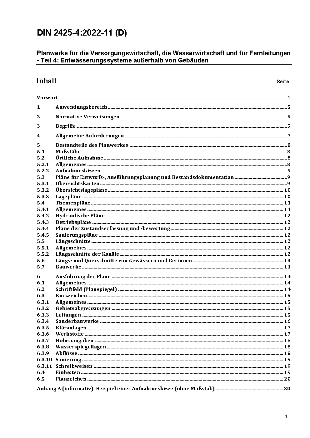 This document is applicable to the creation of new and existing analogue or digital plans/net documentation for drain and sewer systems in the public and private area or in the responsibility of the wastewater utility.