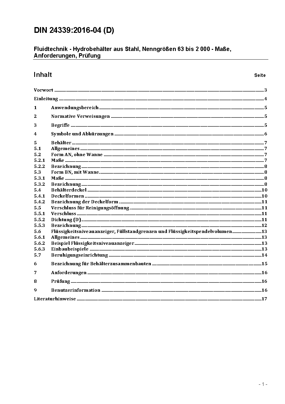 This standard specifies dimensions and requirements for hydraulic reservoirs made of steel for use in stationary industrial applications at atmospheric reservoir pressure.