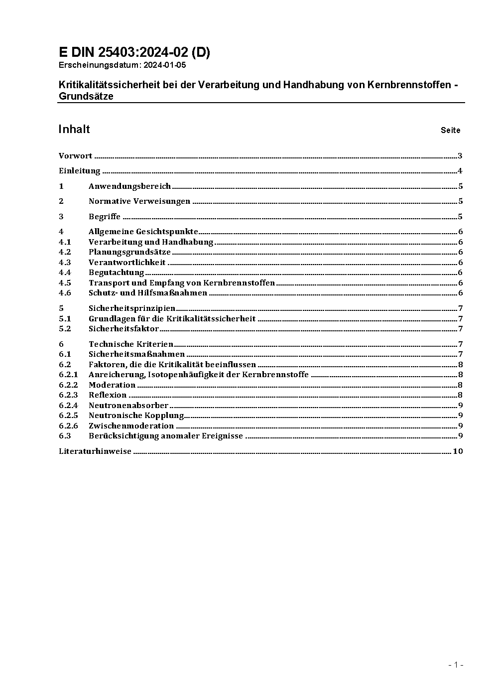 The paper explains physical fundamentals of criticality behaviour of systems containing fissile material to provide a quantitative understanding of influences on criticality behaviour of such systems mentioned in DIN 25403-1, on the course of criticality data mentioned in DIN 25403-2 to DIN 25403-8, and on the efficiency of precautionary measures mentioned in DIN 25403-1.
