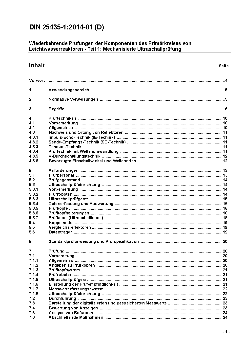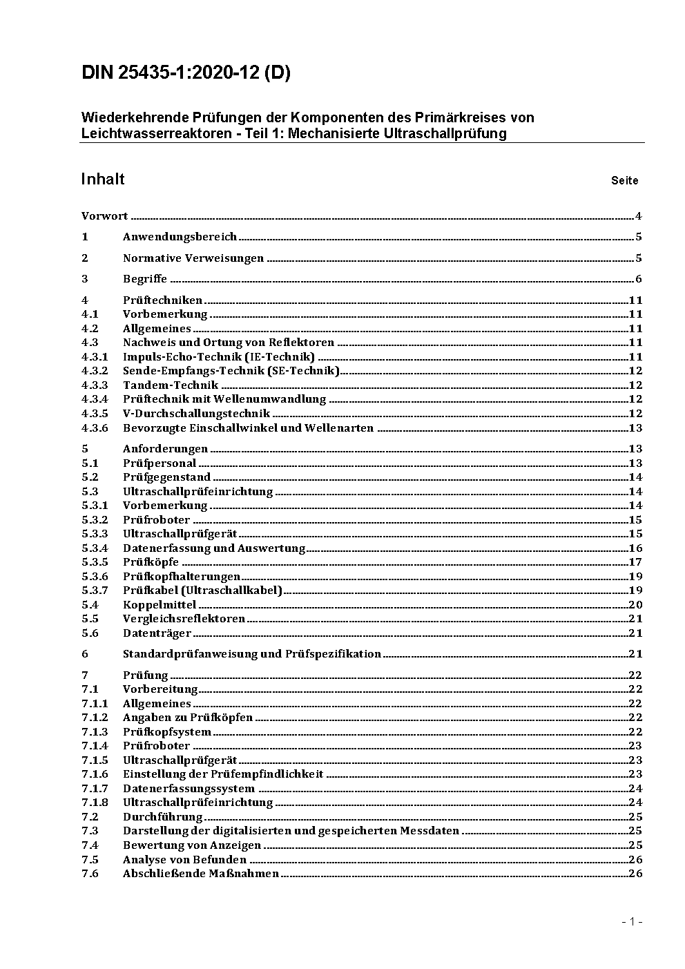 This standard is intended to be applied to in-service inspections using automated ultrasonic testing devices for primary coolant circuit components of light water reactors. It specifies inspection methods, requirements relating to the inspection personnel, the equipment, the preparation and performance of the inspection as well as data recording and documentation.
