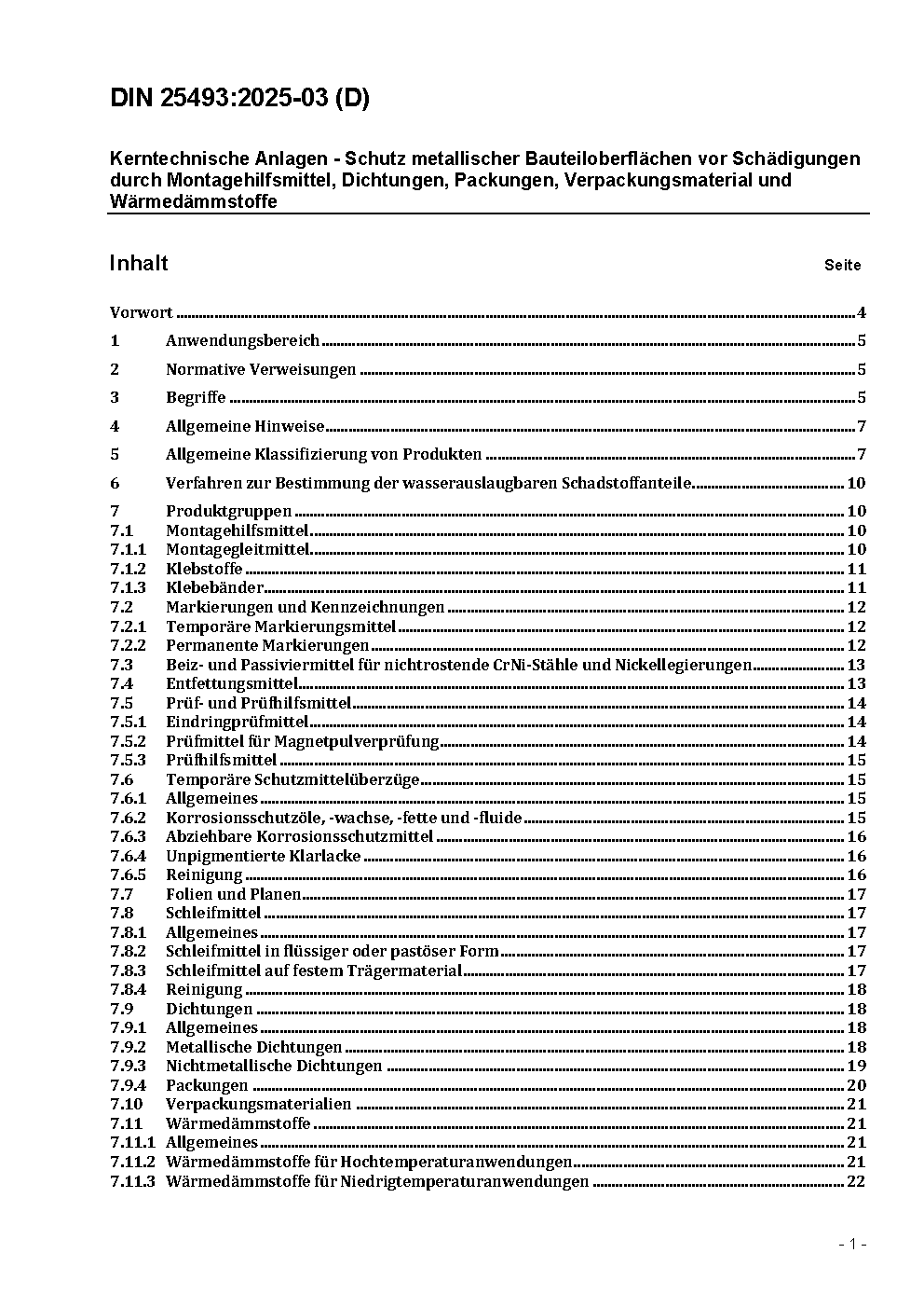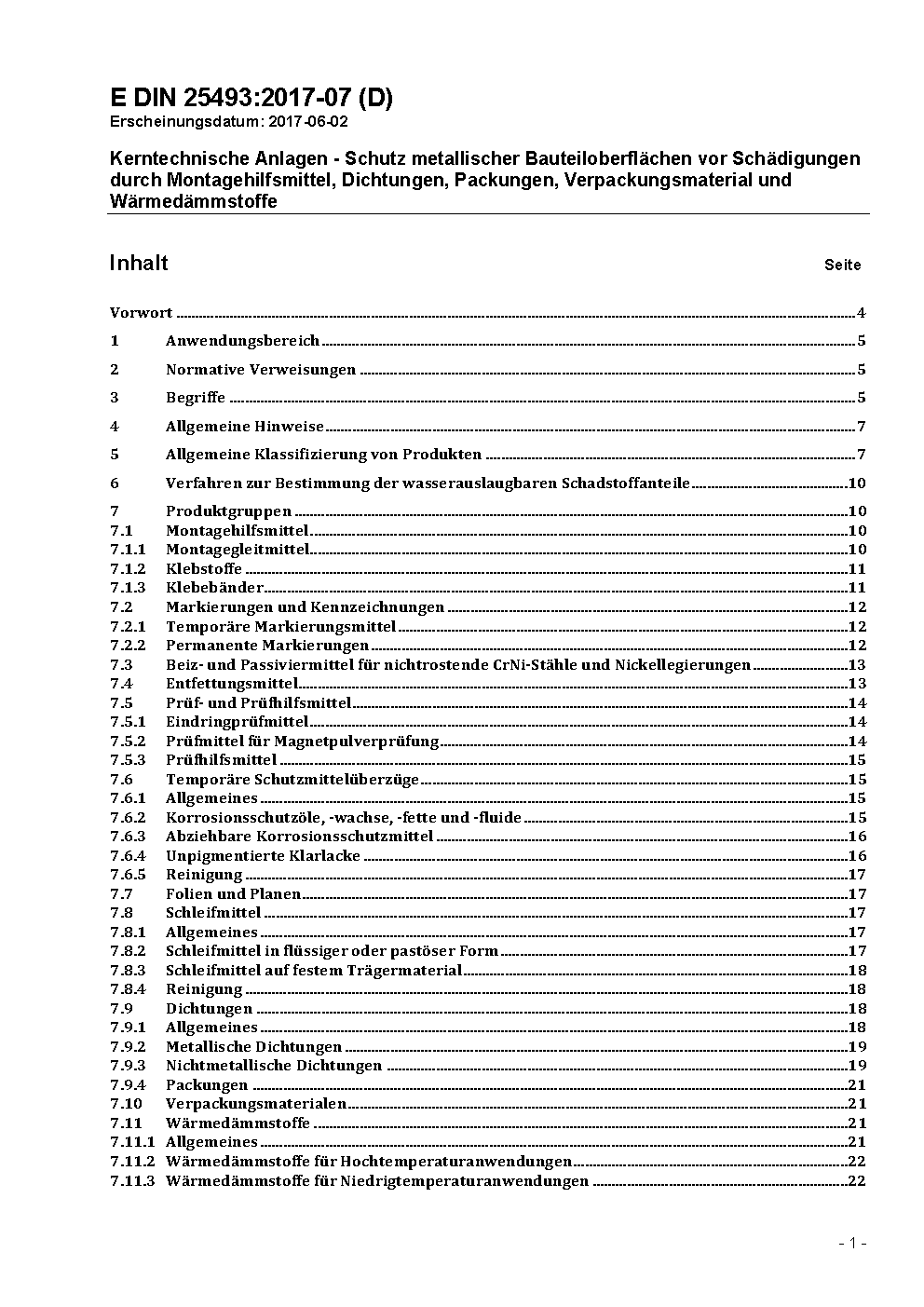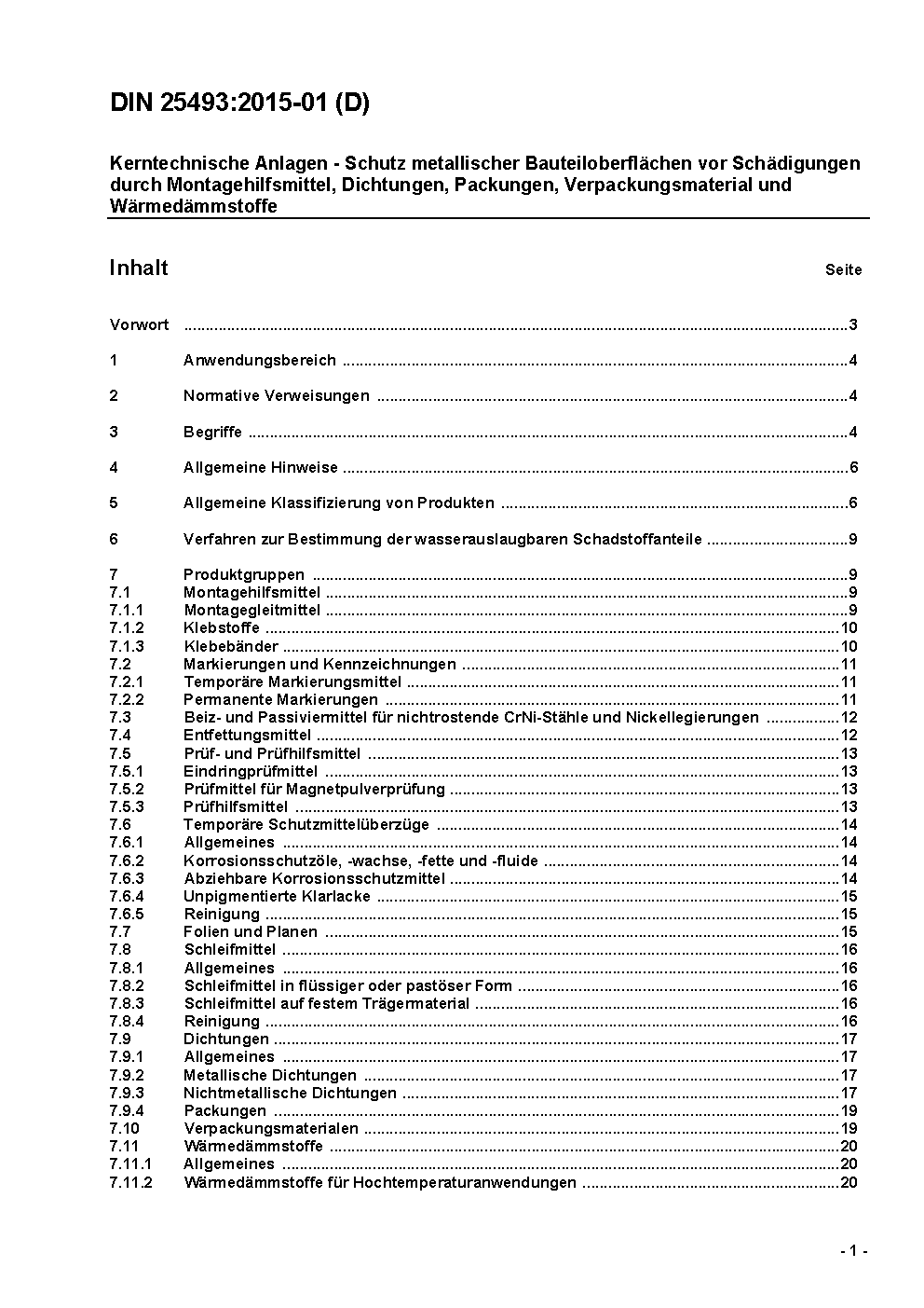 The document is applicable in cases where these product groups are used in contact with metallic surfaces of structural parts in nuclear facilities. For these product groups recommended and allowable maximal mass portions are specified.