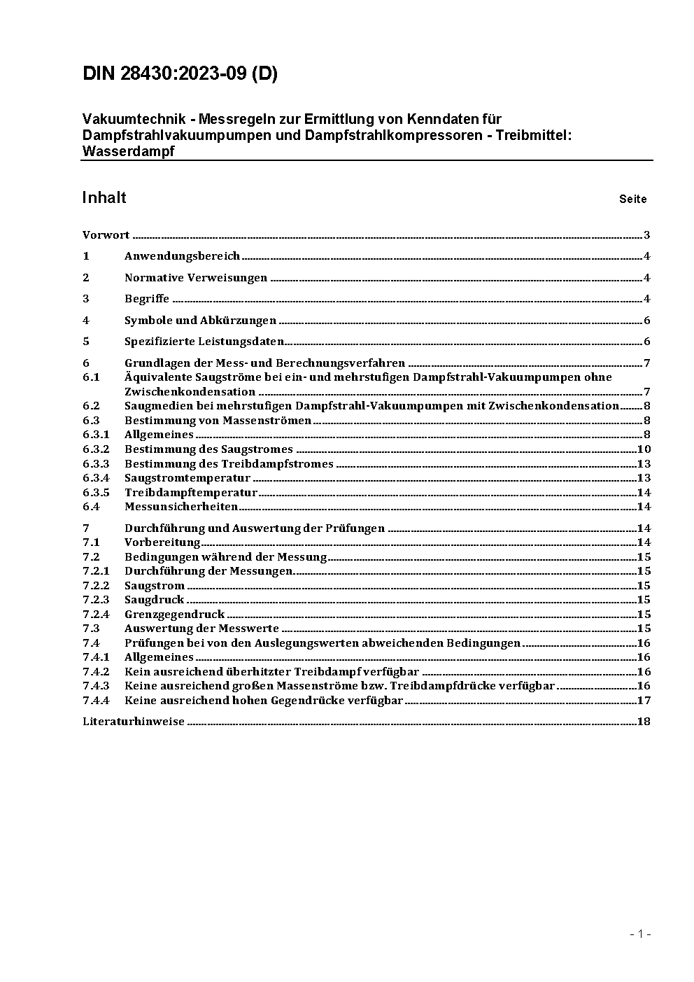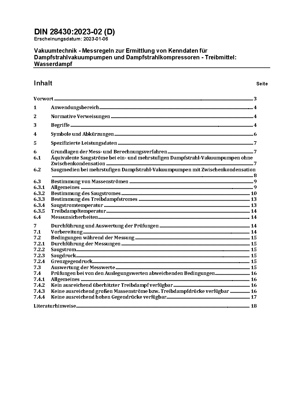 Vakuumtechnik - Messregeln zur Ermittlung von Kenndaten für Dampfstrahlvakuumpumpen und Dampfstrahlkompressoren - Treibmittel: Wasserdampf