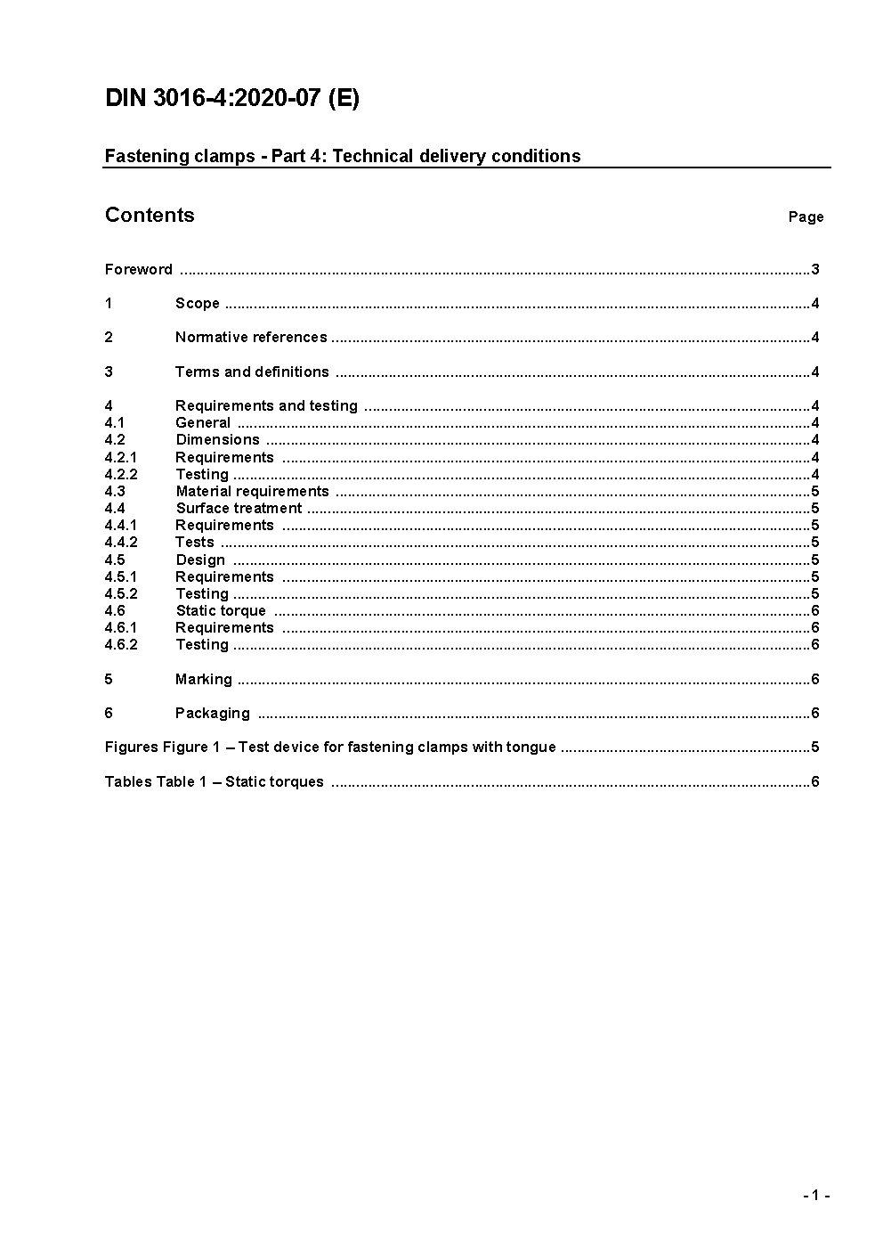 The document is valid for fastening clamps and section clamps with the main standard number DIN 3016.