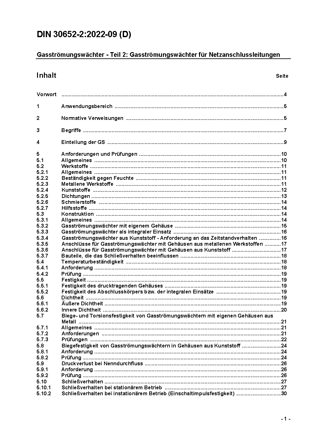 Gasströmungswächter - Teil 2: Gasströmungswächter für Netzanschlussleitungen