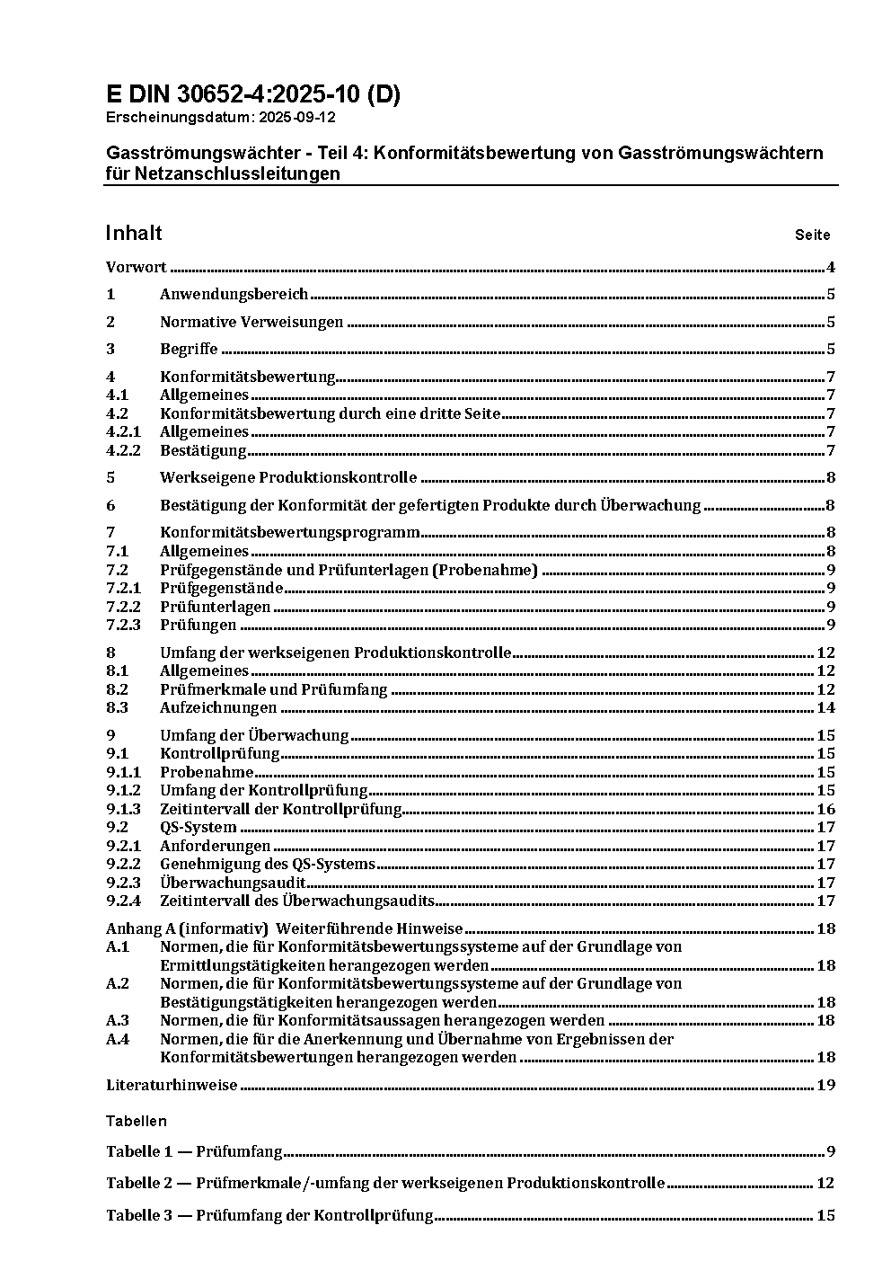 Gasströmungswächter - Teil 4: Konformitätsbewertung von Gasströmungswächtern für Netzanschlussleitungen / Achtung: Diese Norm ist Bestandteil des DVGW Regelwerks.*Gilt in Verbindung mit DIN 30652-2 (2022-09)