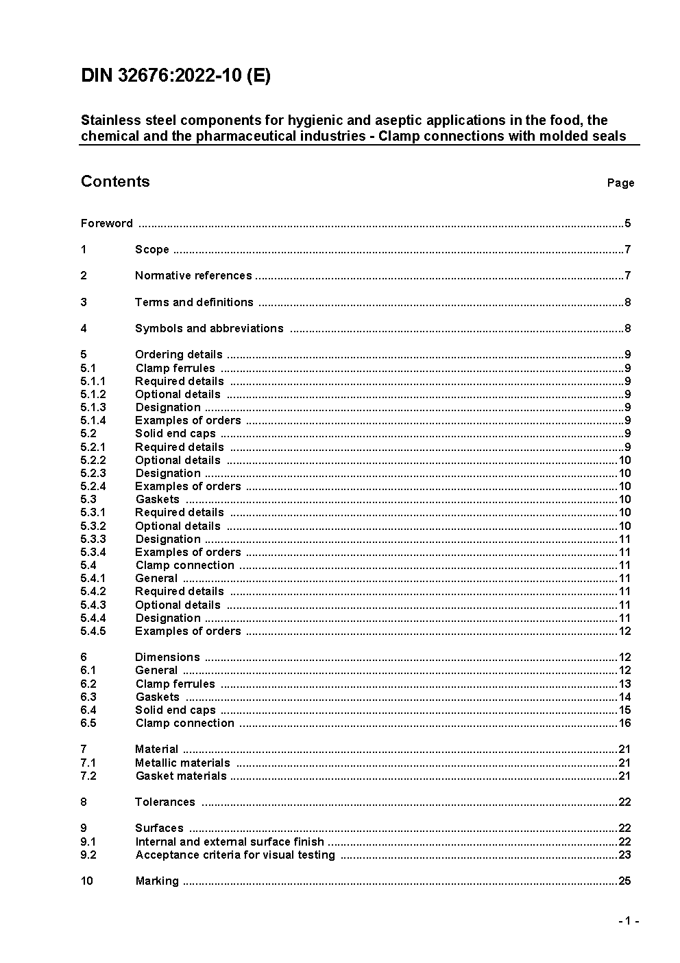 Food industry fittings; clamp connections for stainless steel tubes