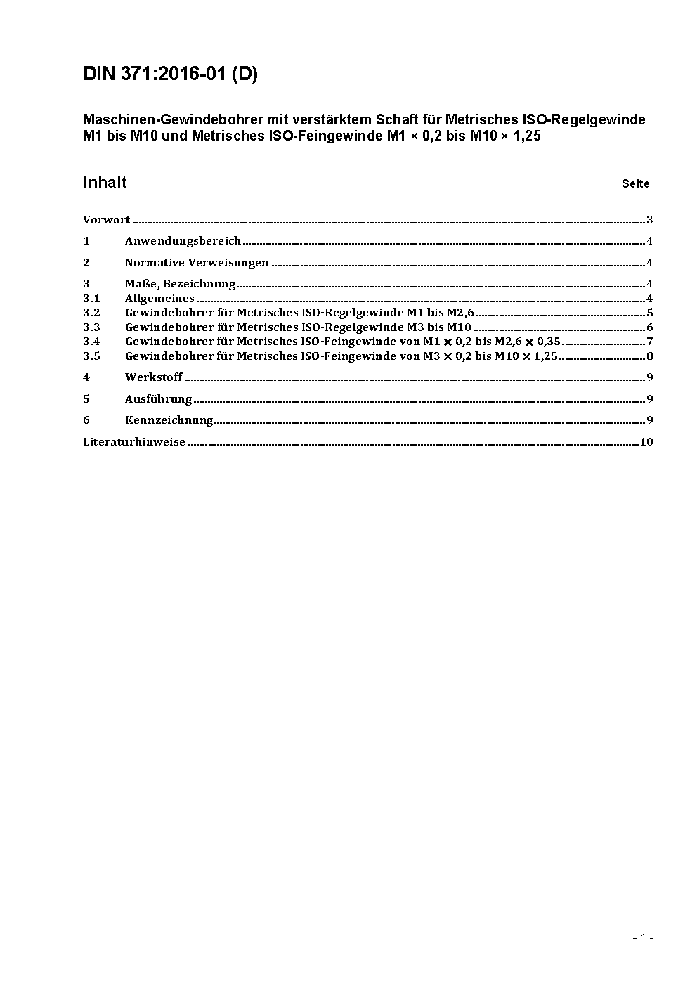 The document applies to machine taps with reinforced shank used for the manufacture of ISO metric coarse threads according to DIN 13-1.