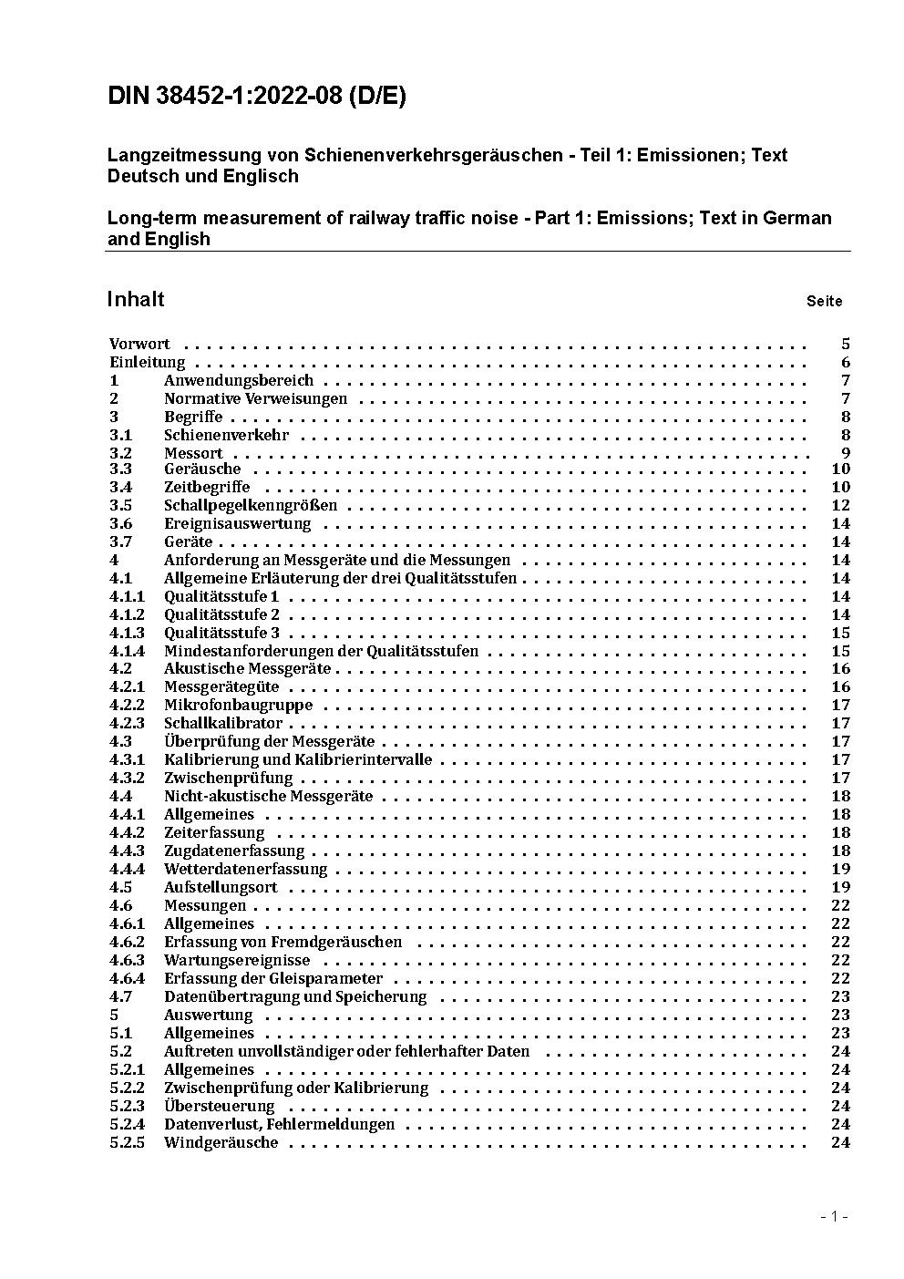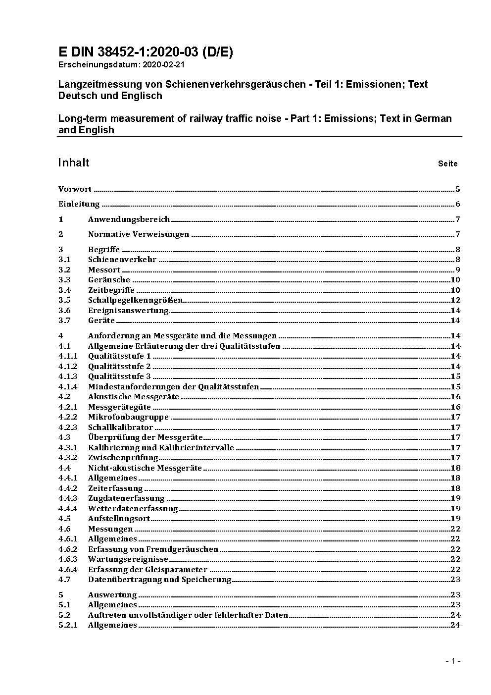 Langzeitmessung von Schienenverkehrsgeräuschen - Teil 1: Emissionen; Text Deutsch und Englisch