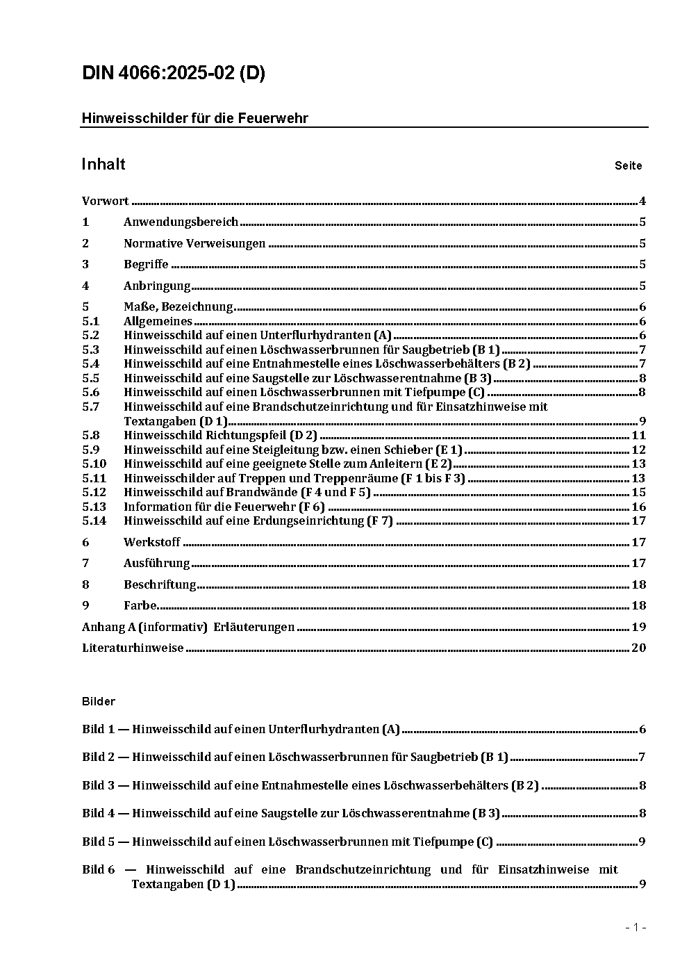 The document spezifies requirements of information signs for fire brigade and other fire fighting forces, for example to indicate the water supply.