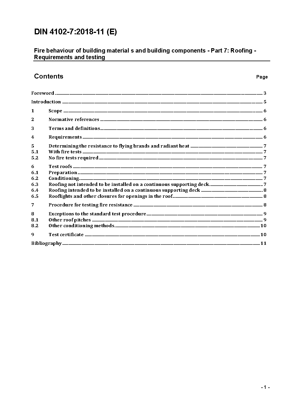 Fire behaviour of building materials and building components - Part 7: Roofing; definitions, requirements and testing