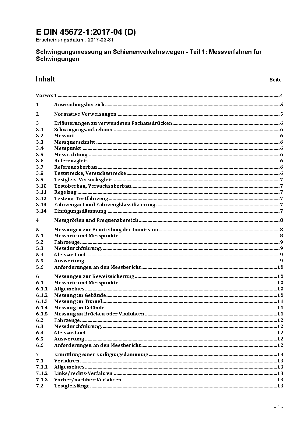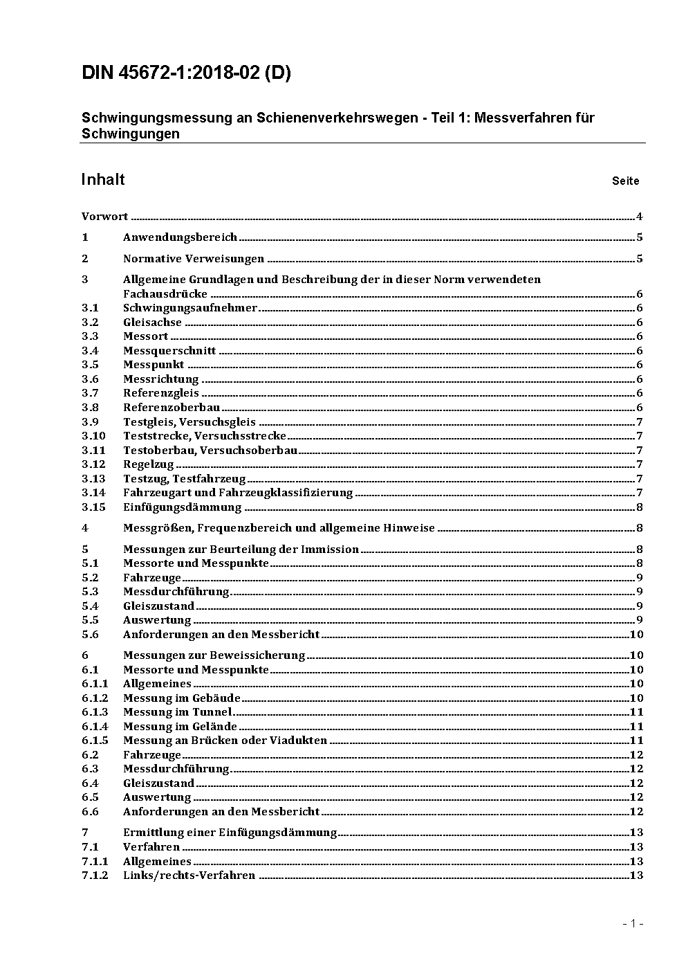 This standard gives requirements particular to vibration measurement near railway systems. This standard specifies a method of measuring mechanical vibration generated by railway vehicles on tracks and which is transmitted to the track system. It deals with measurements at the source, along the propagation path and at the receiver. These measurements can be carried out in conjunction with the planning, construction and operation of railway systems. Based on the measurement results, the following tasks can be considered: - assessment of existing situations according to regulations and measurements at the immission site, i.e. exposure of human beings, buildings and sensitive equipment, - proofing of existing emission or immission situations, - vibration immission prognosis for different situations in the system source - transmission - receiver, - determination of the effectiveness of vibration reducing measures at the source, in the transmission path or at the receiver. Further, this standard comprises the determination of vibration-relevant soil characteristics, such as pressure wave propagation speed, shear wave propagation speed, Rayleigh wave propagation speed, shear modulus, modulus of elesticity and damping. They are useful for calculation of vibration propagation, e. g. for a prognosis.