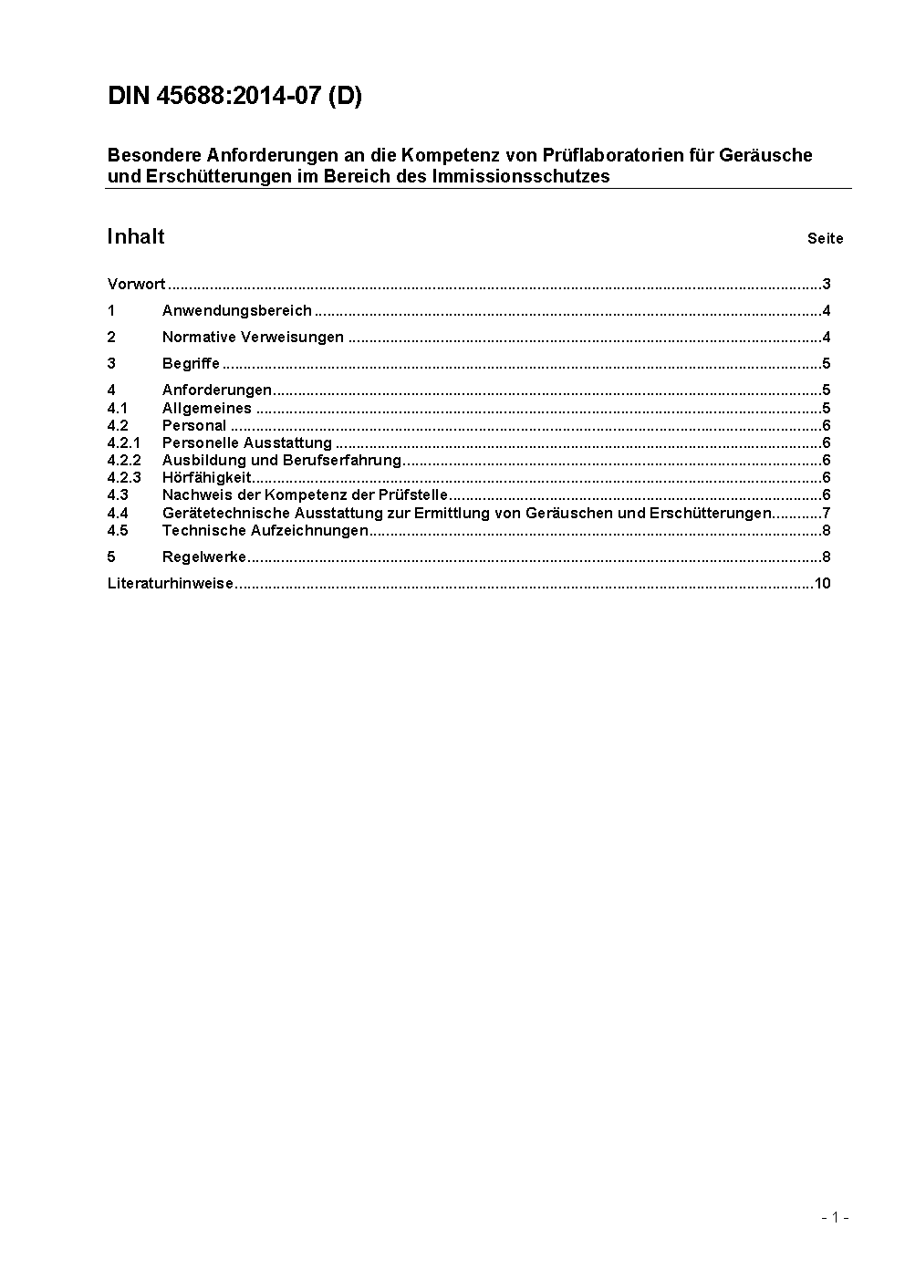 The document covers explanations on applications on general requirements of DIN EN ISO/IEC 17025 for the competence of testing laboratories for sound and vibration. It therefore elaborates the DIN EN ISO/IEC 17025 for the specific aspects of this technical field.