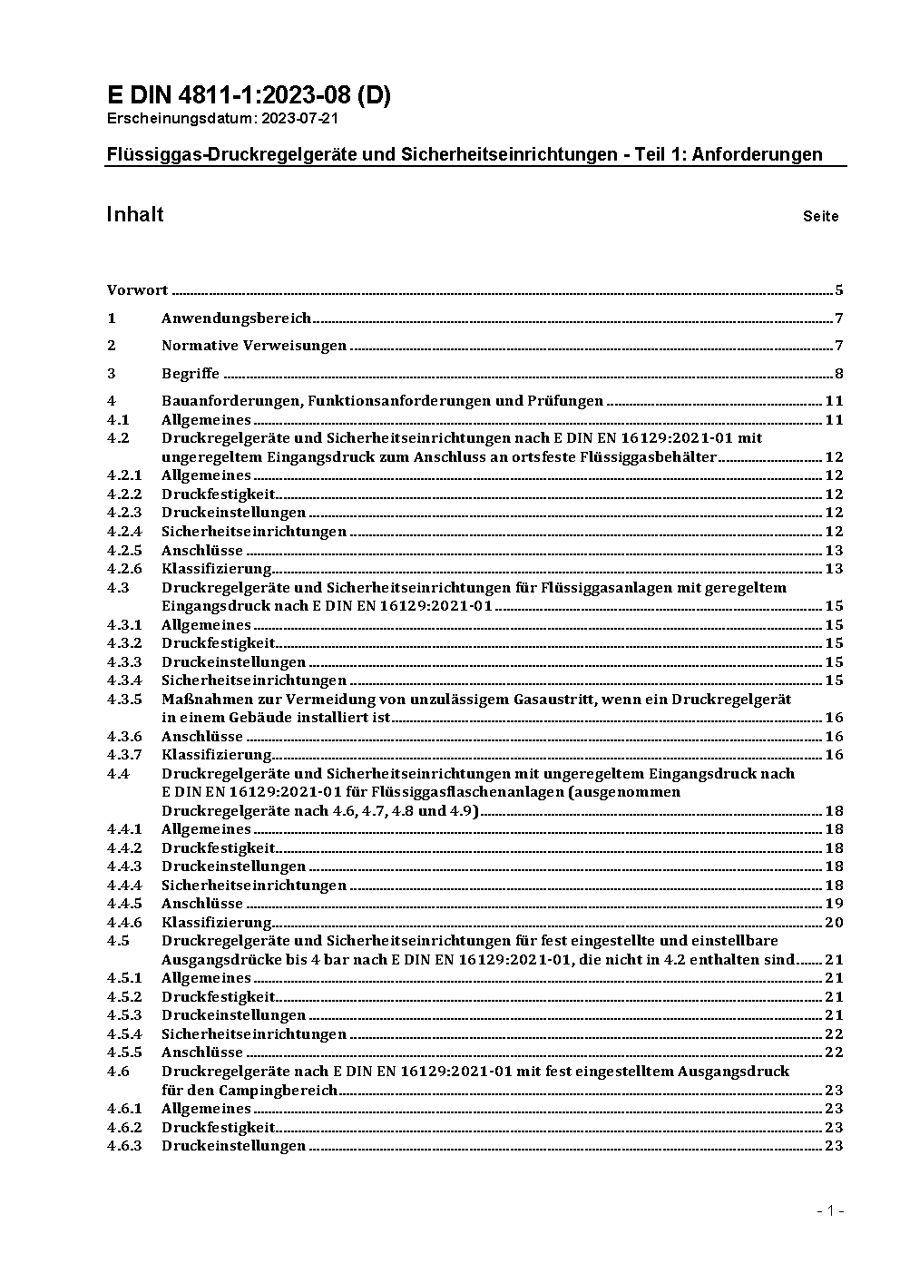 Flüssiggas-Druckregelgeräte und Sicherheitseinrichtungen - Teil 1: Anforderungen / Achtung: Gilt in Verbindung mit DIN EN 16129 (2018-08)