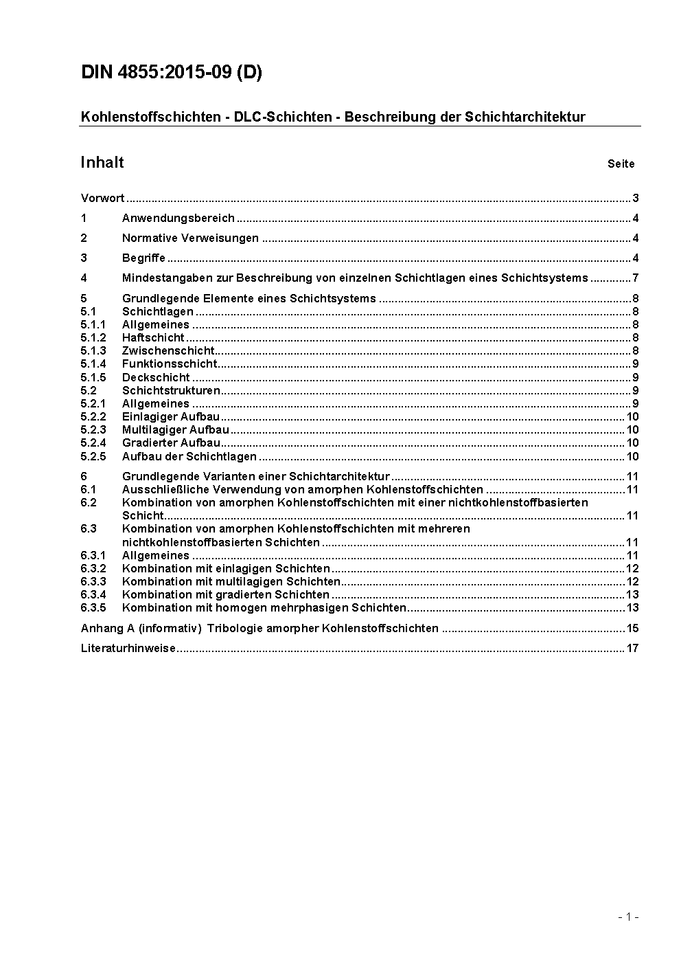 Carbon films - DLC layers - Description of layer architecture