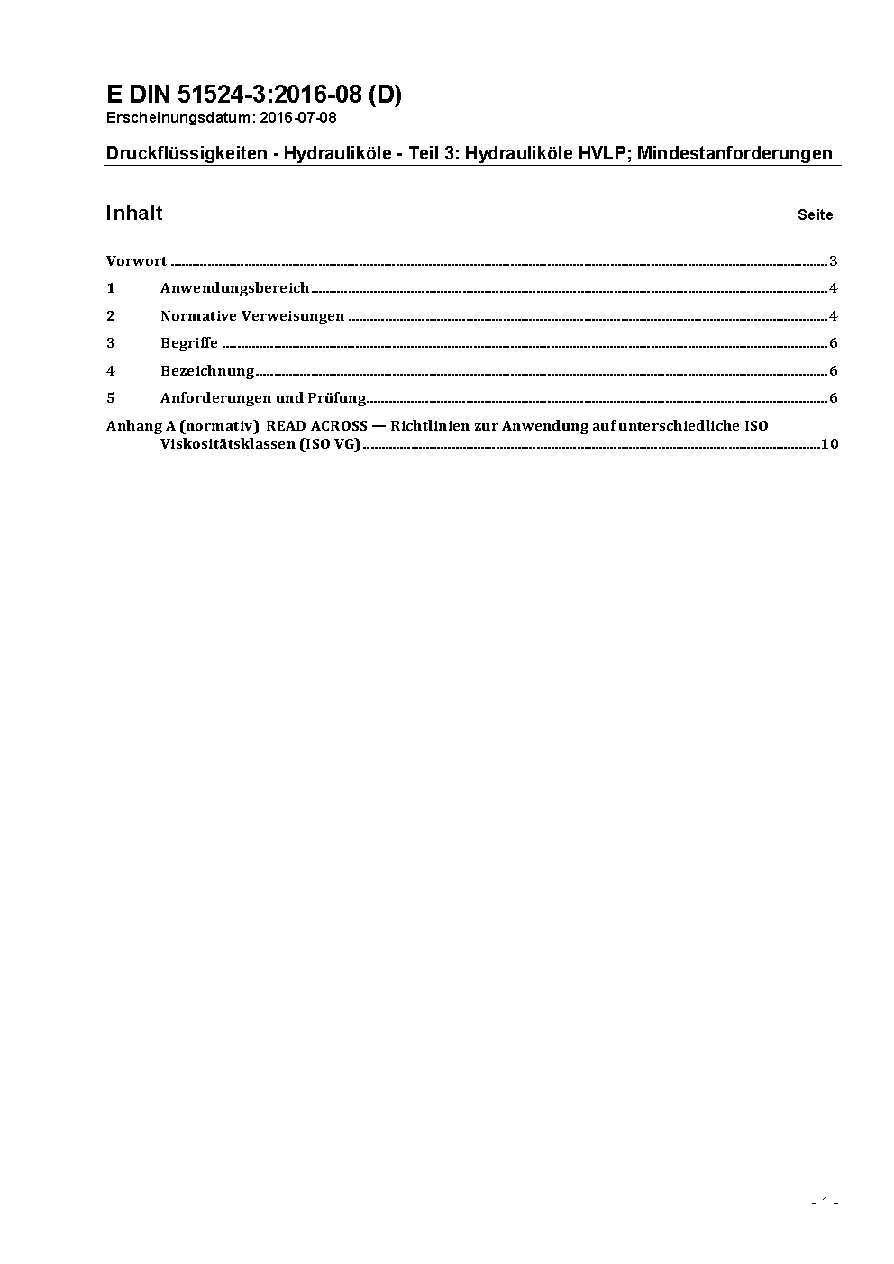 This document applies to hydraulic oils HLVP for hydraulic systems predominantly with hydrostatic drive in which high thermal stress occurs; corrosion can occur caused by the entry of water and/or design or the operating conditions of pumps or hydraulic motors require oils with additives for reducing wear in mixed friction.