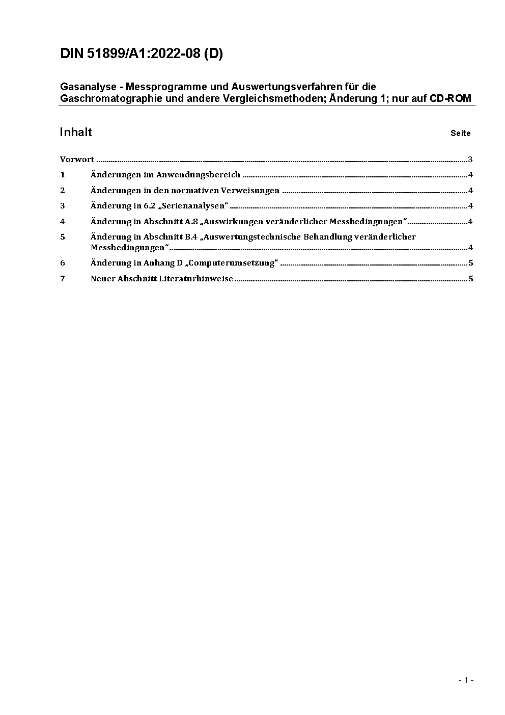 The document specifies measurement programs and data evaluation for gas chromatography and other comparison methods.