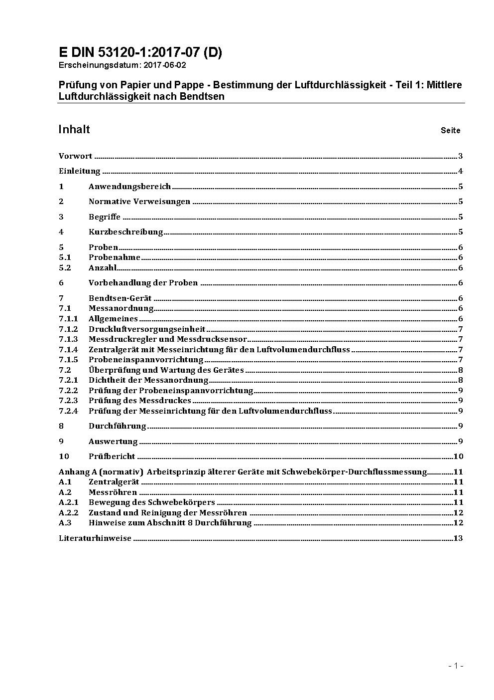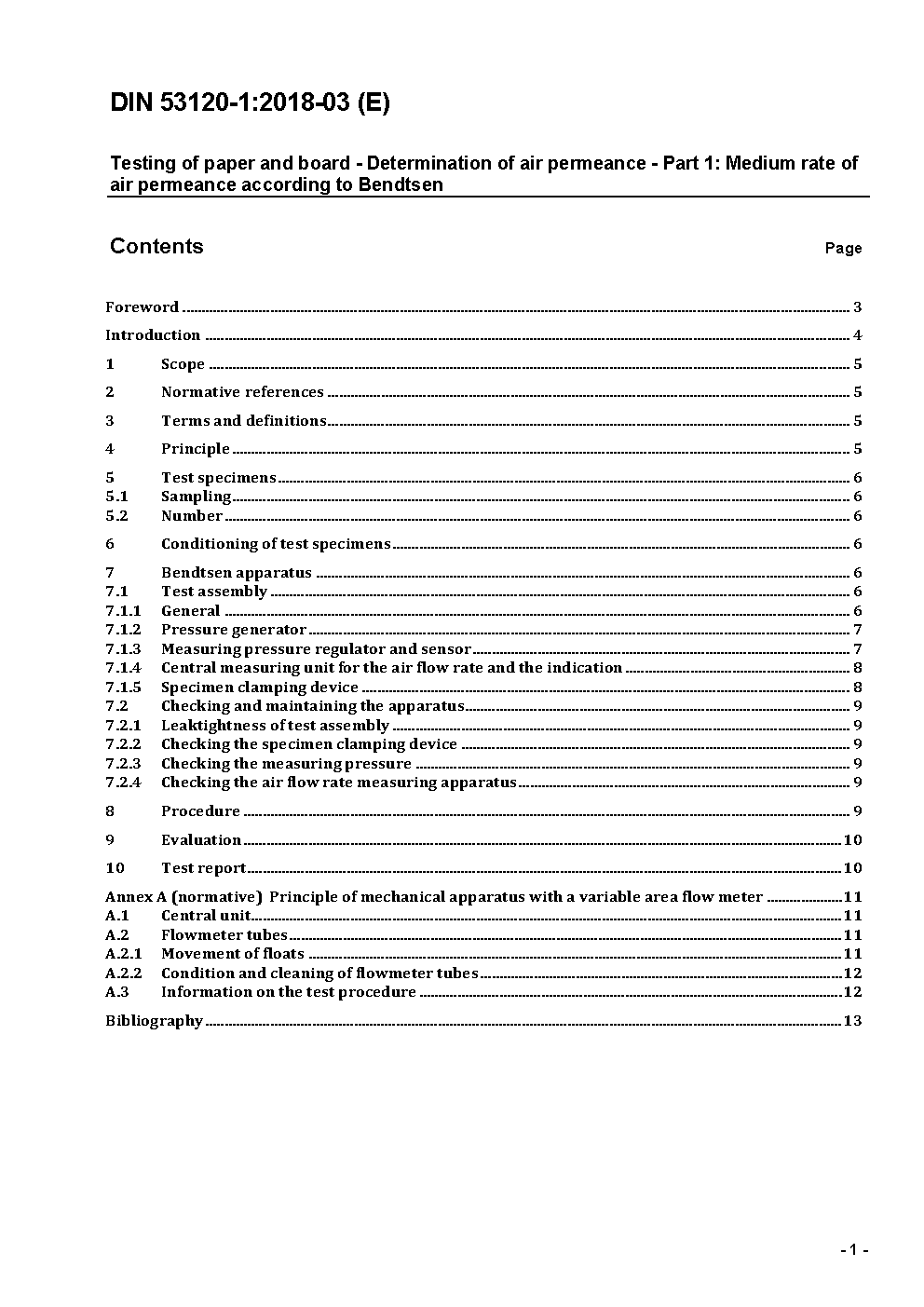 Testing of paper and board - Determination of air permeability - Part 1: Medium rate of air permeability according to Bendtsen