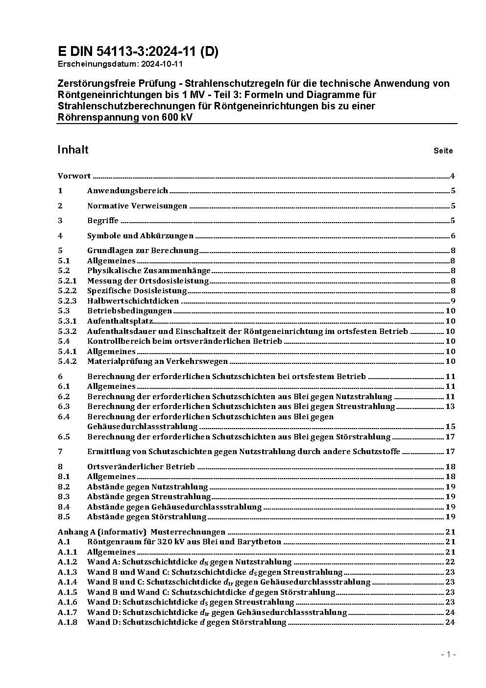This standard specifies the rules for the manufacture, installation and operation of X-ray equipment up to 1 MV for technical application. It contains formulas and diagramms for the calculation of radiation protection.