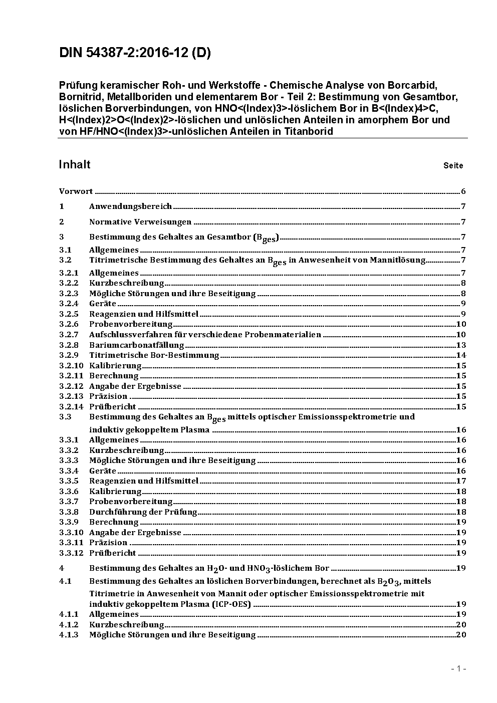 Testing of ceramic raw and basic materials - Chemical analysis of boron carbide, boron nitride, metal borides and elemental boron - Part 2: Determination of total boron, soluble boron compounds, HNO<(Index)3>-soluble boron in B<(Index)4>C, H<(Index)2>O<(Index)2> soluble and insoluble fractions in amorphous boron and HF/HNO<(Index)3> insoluble fractions in titanium boride