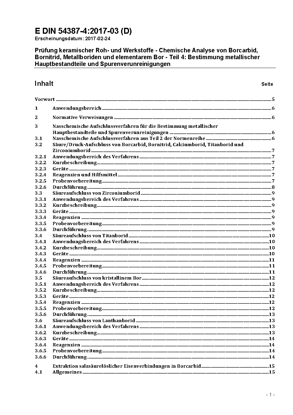 Prüfung keramischer Roh- und Werkstoffe - Chemische Analyse von Borcarbid, Bornitrid, Metallboriden und elementarem Bor - Teil 4: Bestimmung metallischer Hauptbestandteile und Spurenverunreinigungen