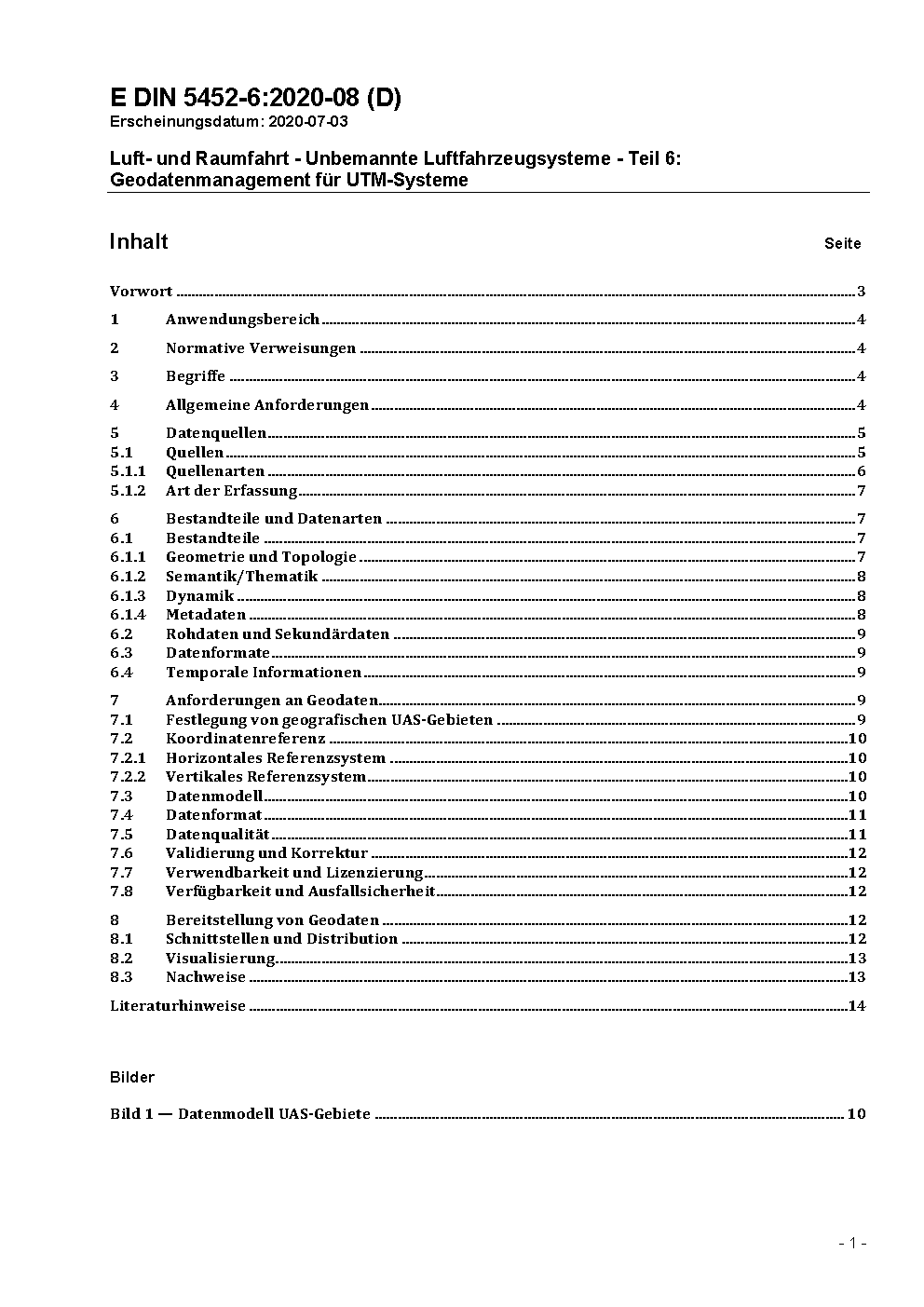 Luft- und Raumfahrt - Unbemannte Luftfahrzeugsysteme (UAS) - Teil 6: Geodatenmanagement für UTM-Systeme