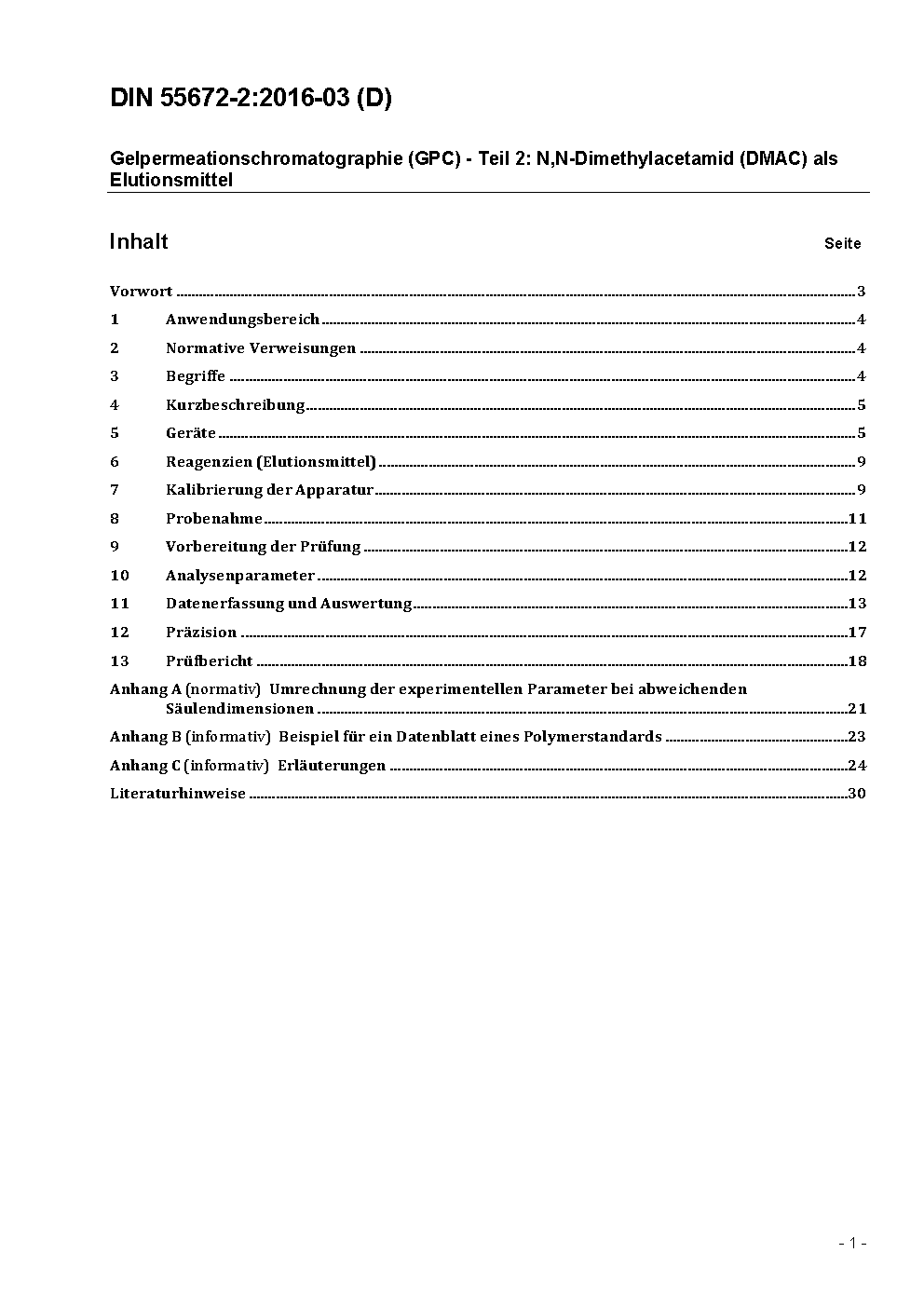 The document describes conditions for the determination of the molar mass distribution, number-average molar mass and weigth-average molar mass, of polymers that are soluble in N,N-dimethylacetamide by gel permeation chromatography.