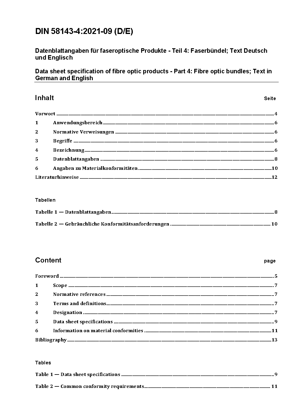 Data sheet specification of fibre optic products - Part 4: Fibre optic bundles; Text in German and English