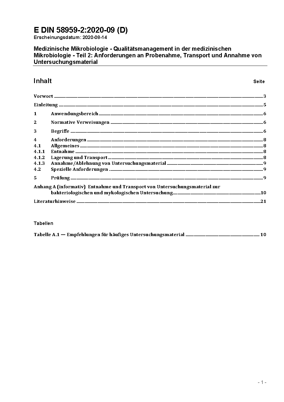 Medizinische Mikrobiologie - Qualitätsmanagement in der medizinischen Mikrobiologie - Teil 2: Anforderungen an Probenahme, Transport und Annahme von Untersuchungsmaterial