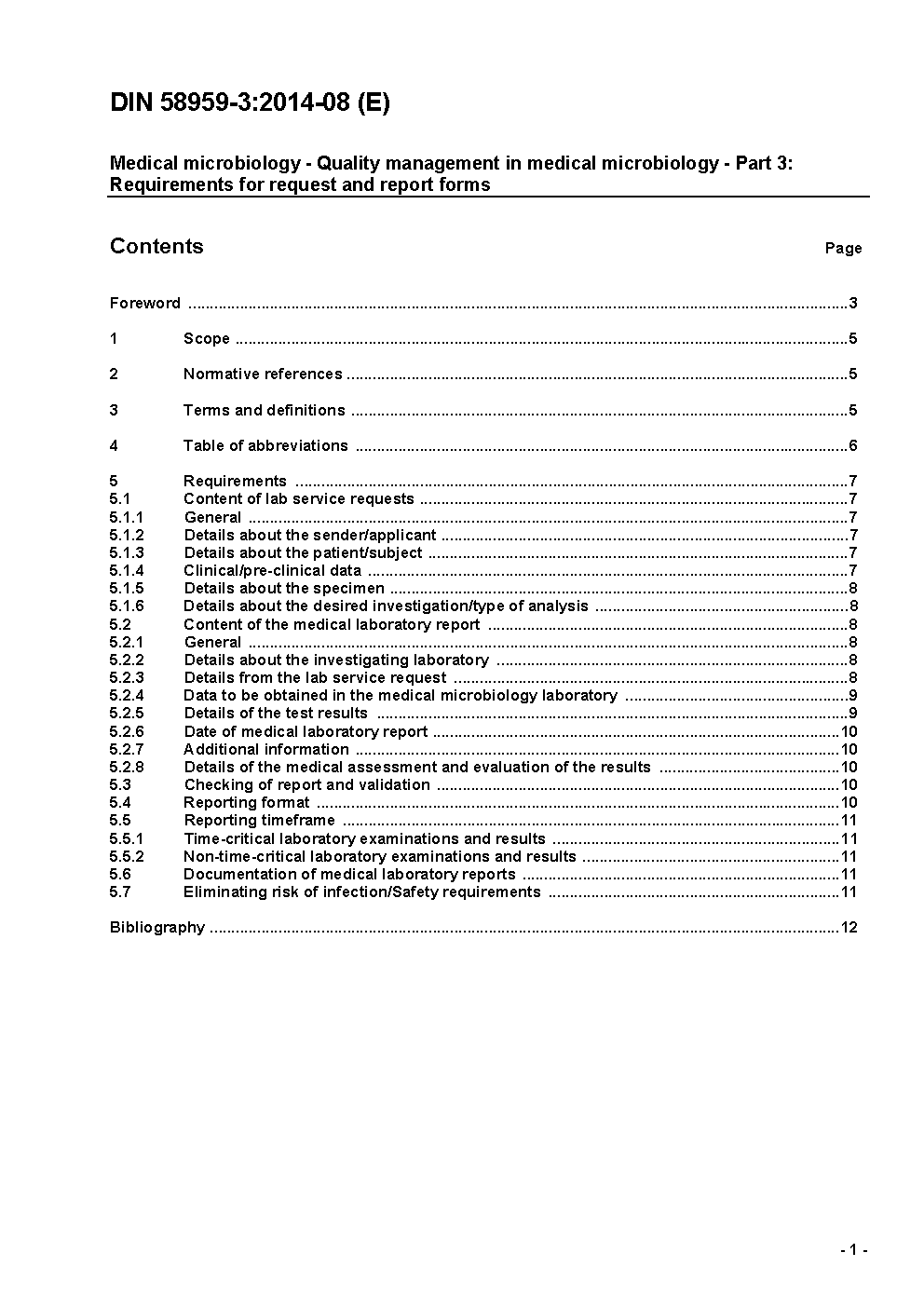 The document applies to all request for investigation of specimens sent to medical microbiological laboratories according to DIN EN 12128 and reports which are made out to these laboratories to communicate the results of investigations related to patients.