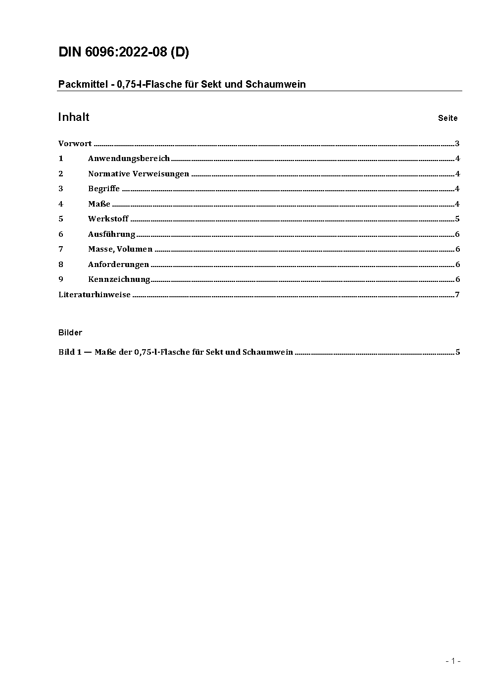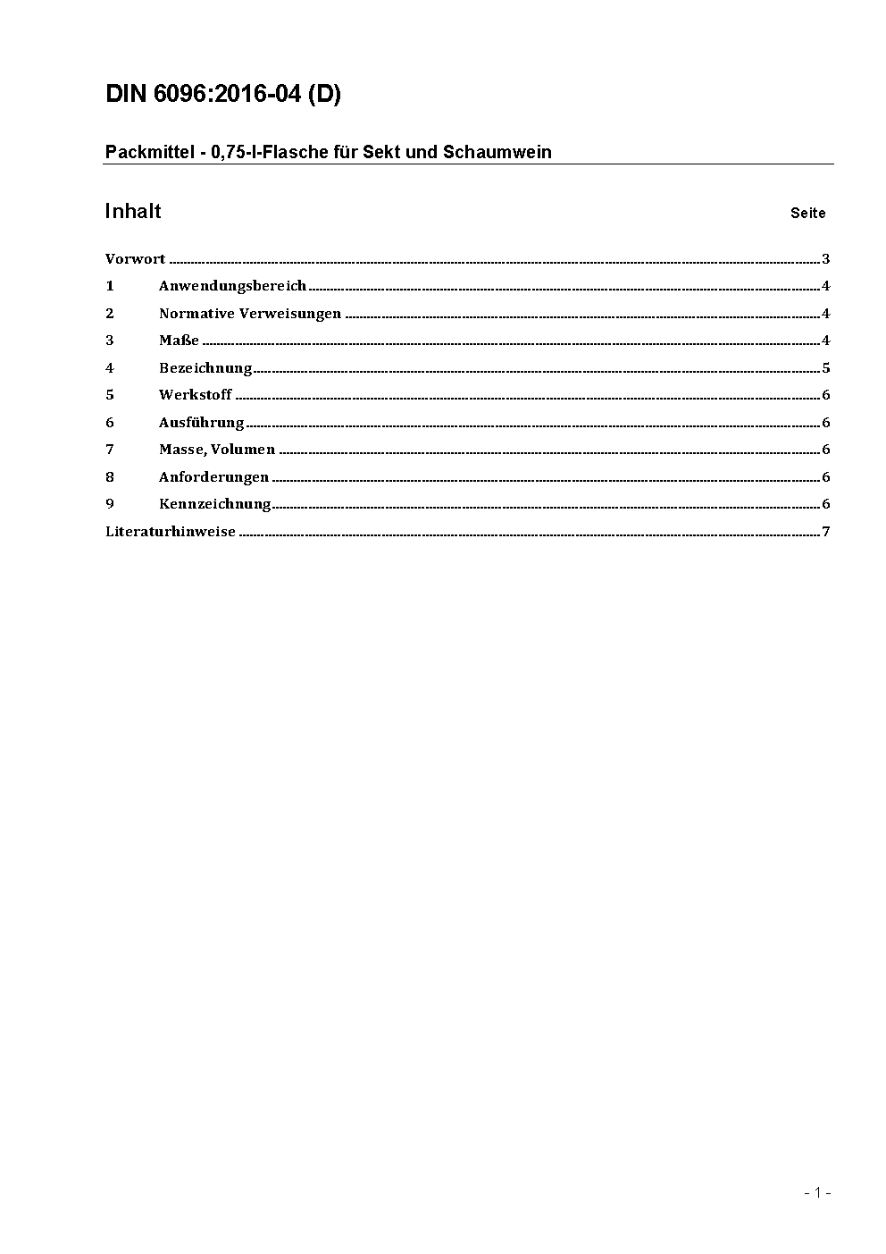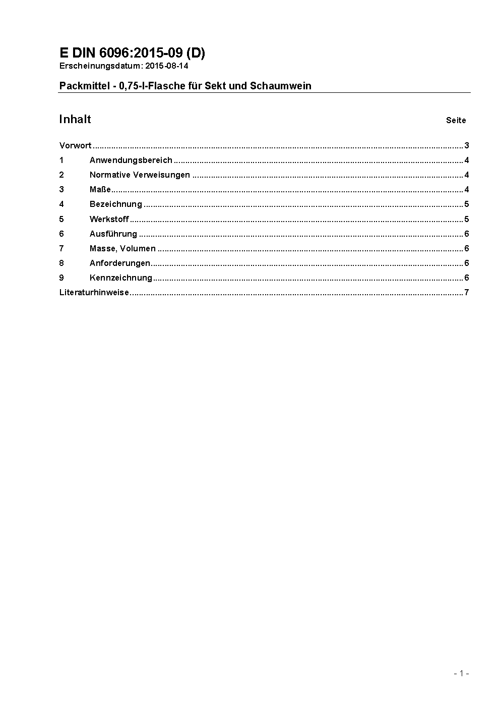 The document specifies bottles made of glass with a nominal volume of 0,75 l which are mainly used for bottle fermentation.
