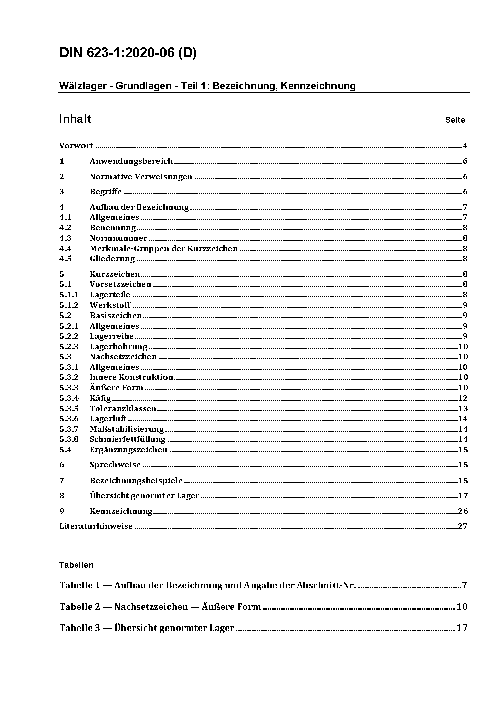Rolling bearings - Fundamental principles - Part 1: Designation, marking