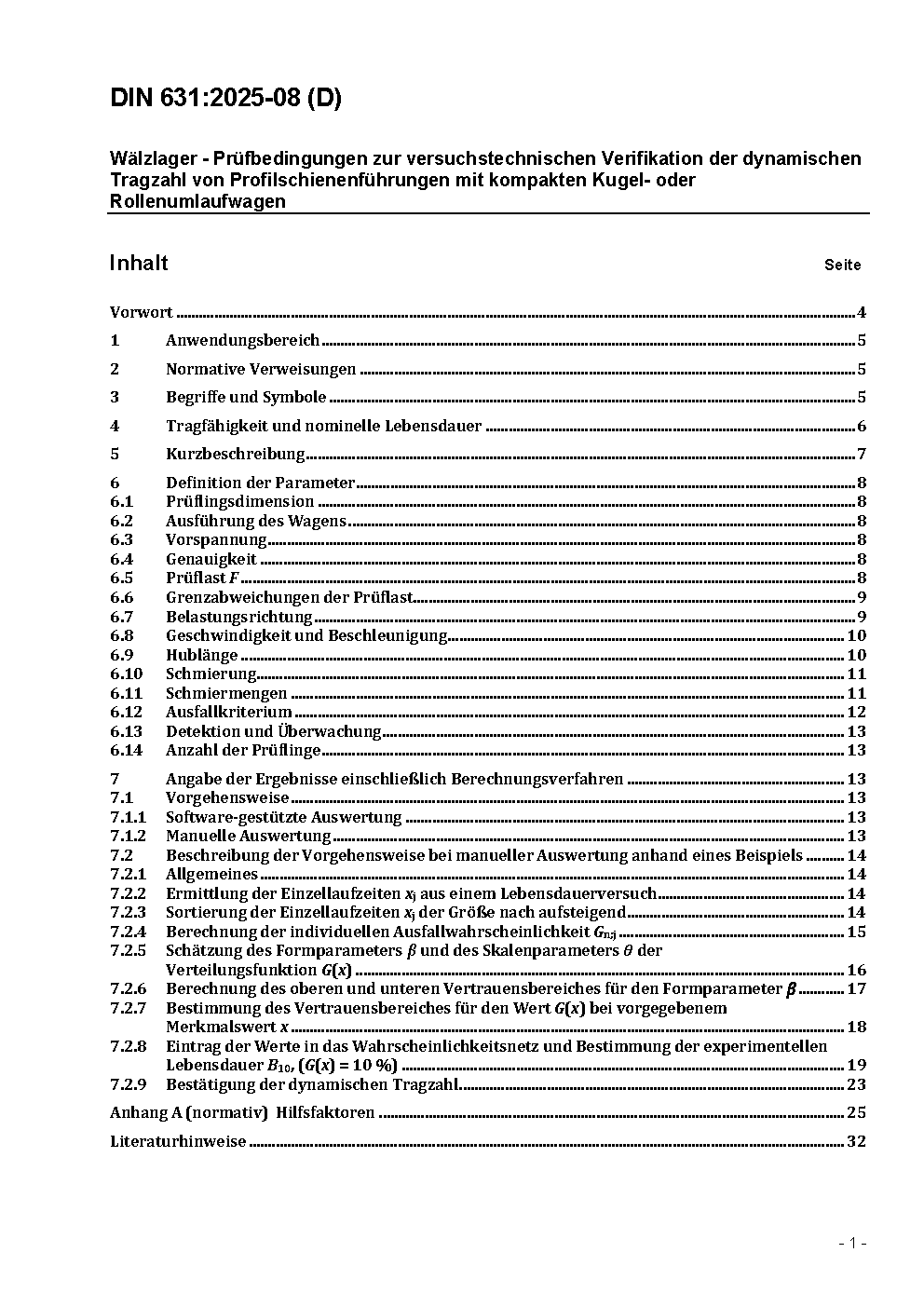 This document specifies the testing conditions for the experimental verification of the dynamic load rating of linear rolling guides according ISO 14728-1.
