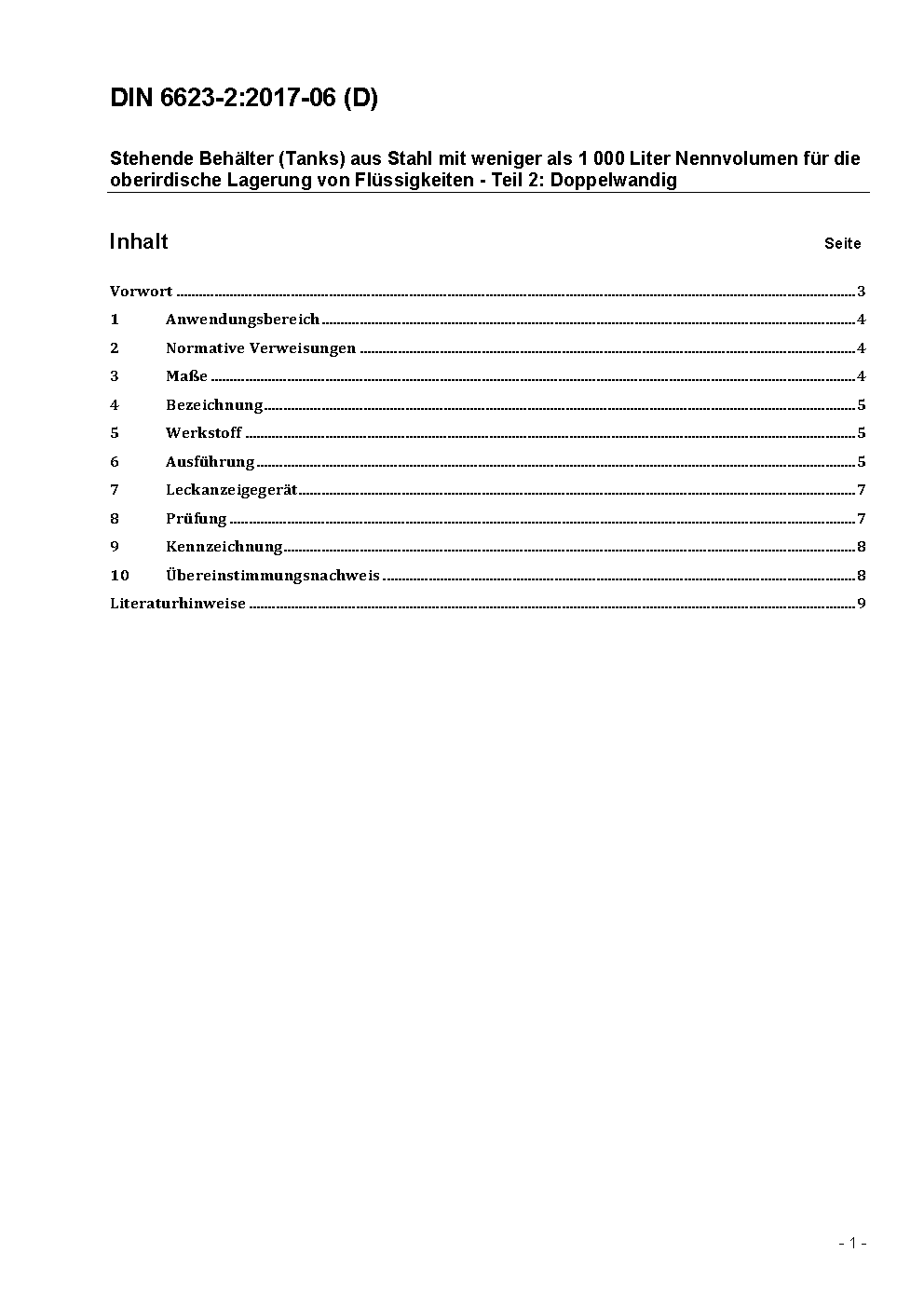 The standard contents dimensions, characterization, requirements for materials and design as well as test-conditions and requirements for marking of vertical tanks of steel, double-walled, less than 1000 litre, for above ground storage of flammable and inflammable liquids.