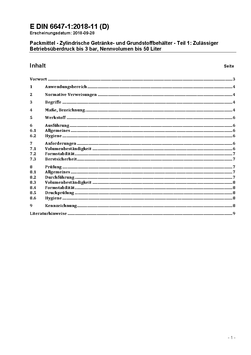 This standard applies to beverage containers with a capacity of up to 50 litres, consisting of two cylindrical deep-drawn elements (shells) joined by welding. It covers containers rated for an operating pressure up to 3 bar. The containers are used as returnable packaging. Beverage containers in accordance with thisstandard are preferably used for beer. This standard specifies the quality requirements with respect to material, constancy of volume and dimensional stability.
