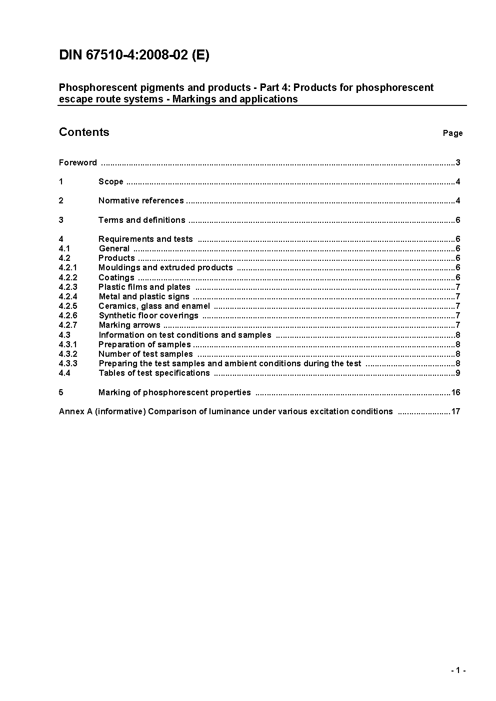 This document specifies phosphorescent products according to their properties and materials as well as to their requirements to be observed for safety applications.