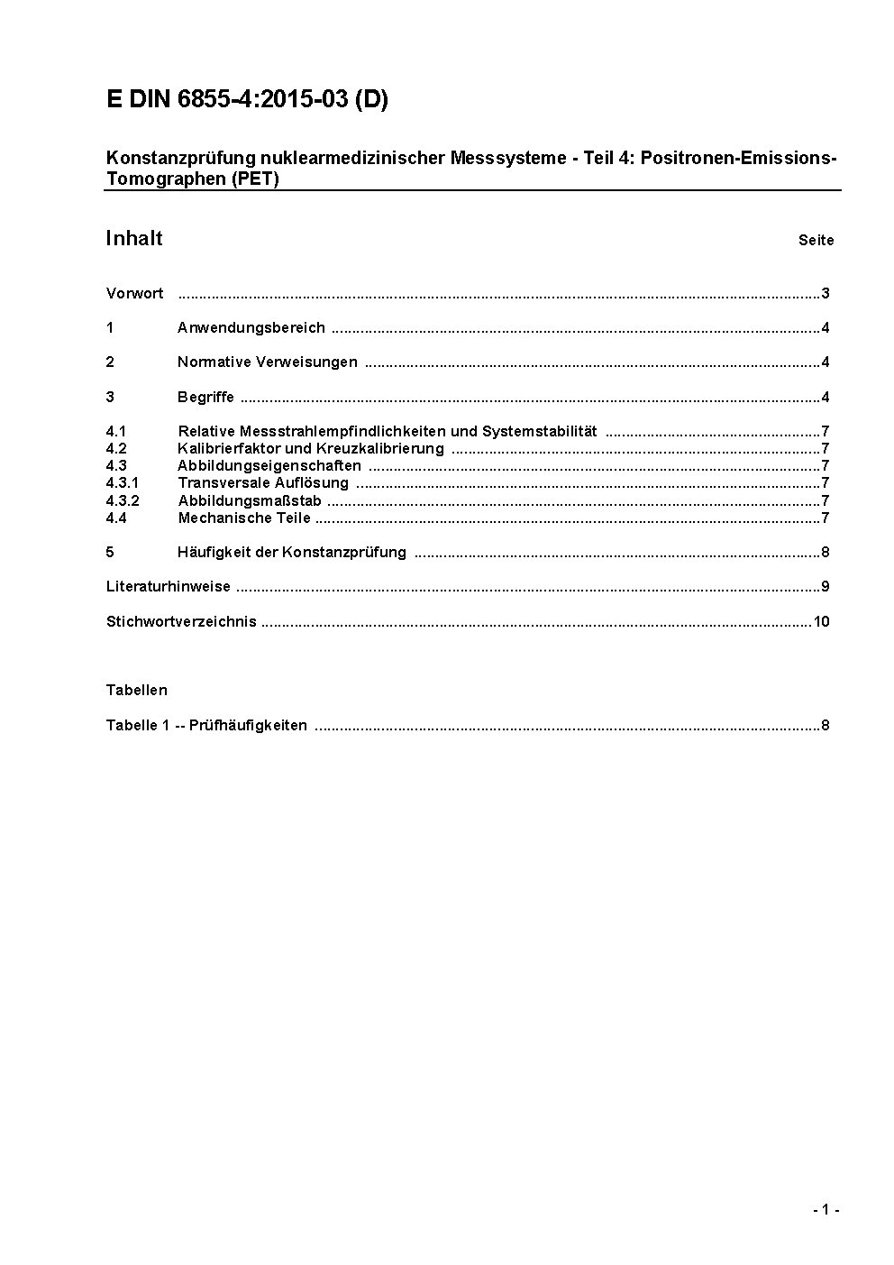 This Standard specifies methods for constancy testing of positron emission tomographs (PET). It applies for positron emission tomography with stationary, ring-shaped radiation detectors. The standard does not apply for SPECT systems operated in coincidence mode.