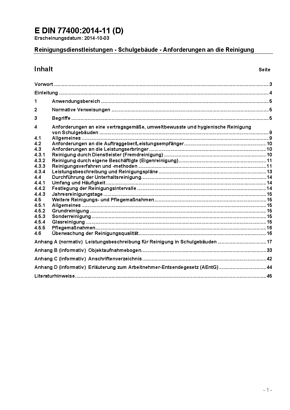 This standard defines minimum requirements for the cleaning of school buildings and related sports facilities.