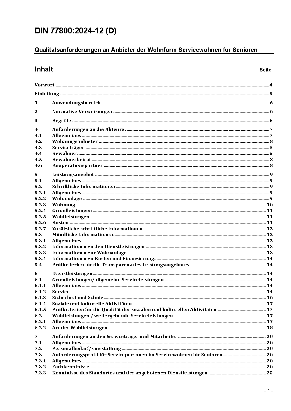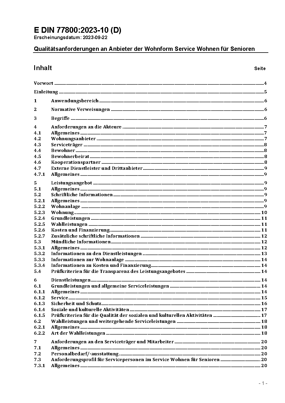 This standard specifies a minimum of quality standards, which establish an orientation for providers of which services they should offer, if they intend to offer assisted living.