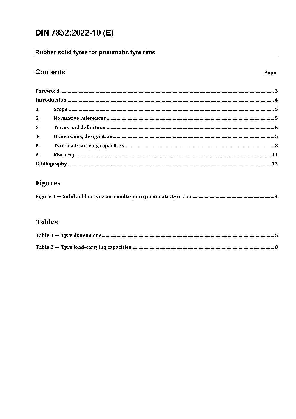 The document applies to rubber solid tyres, which can be assembled on the existing rims (pneumatic tyre rims) instead of rims for industrial and fork lift trucks, according to DIN 7820 and DIN 7825.